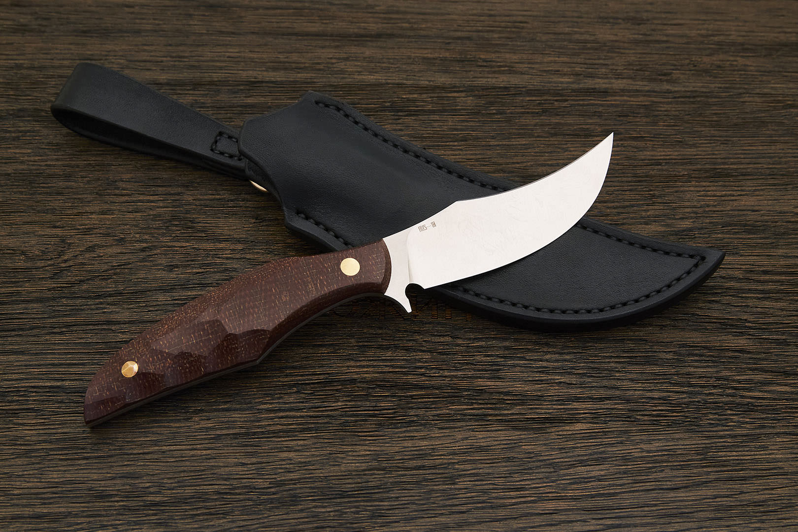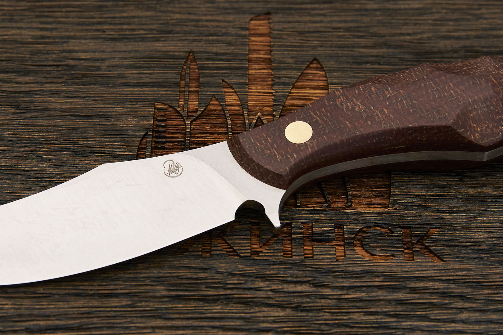 Микарта – очень прочный конструкционный материал, представляющий собой слоистый пластик на основе ткани и фенолформальдегидных или эпоксидных смол. Слои ткани пропитываются и склеиваются под высоким давлением и температурой. Благодаря совокупности потребительских свойств micarta (текстолит) прекрасно подходит для изготовления рукоятей ножей. Прочная, не впитывает ни воду, ни запахи, тактильная и высоко декоративная за счет разнообразия текстур и цветов. По теплопроводности микарта близка к натуральному дереву, что позволяет достаточно комфортно использовать ножи на сильном морозе.