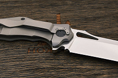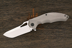 Складной нож оригинальной формы для EDC (Every Day Carry) ношения. Клинок формы drop-point имеет небольшую горбинку на обухе с насечкой, предотвращающей соскальзывание пальца при упоре. Раскрытие ножа производится за плавник, выступающий над спинкой рукоятки в закрытом виде и выполняющий роль подпальцевого упора в раскрытом. Осевой узел оборудован керамическими подшипниками, обеспечивающими плавное и легкое открывание. Фиксацию клинка в раскрытом состоянии обеспечивает механизм Liner Lock, а установленный в нем шарик детента защищает от случайного выбрасывания. Рукоятка выполнена в виде накладок из текстурированного композита и оборудована правосторонней клипсой для крепления при ношении в кармане.