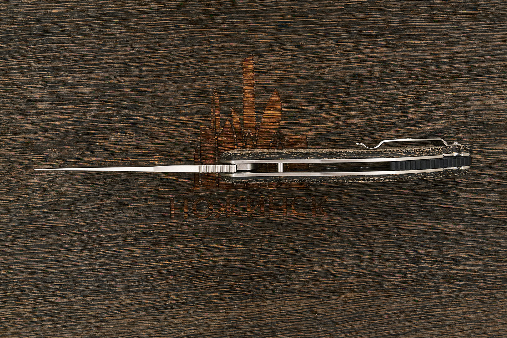 Складной нож для повседневного ношения с оригинальным восточным дизайном. Клинок имеет задранный над линей обуха агрессивный и тонкий кончик, характеризуемый среднеазиатским персидским стилем (upswept point), подходящим для деликатных и точных разрезов. Раскрытие ножа производится за плавник, выступающий над спинкой рукоятки в закрытом виде и выполняющий роль подпальцевого упора в раскрытом. Осевой узел оборудован керамическими подшипниками, обеспечивающими плавное и легкое открывание. Фиксацию клинка в раскрытом состоянии обеспечивает механизм Liner Lock, а установленный в нем шарик детента защищает от случайного выбрасывания. Рукоятка изогнутой формы выполнена в виде плоских накладок из композита, обеспечивающих удобное ношение ножа в кармане и надежное удержание при работе. На ноже предусмотрена клипса для надежного крепления и отверстие в бэкспейсере для темлячного шнура.