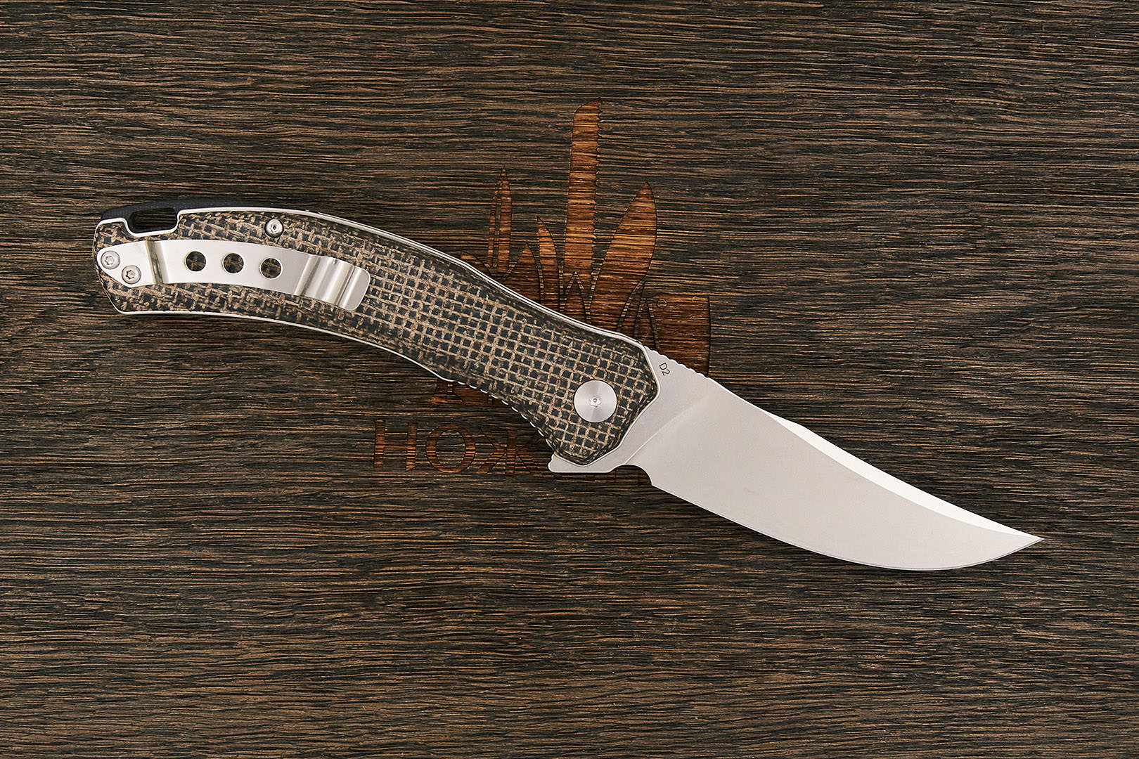 D2 – высоколегированная инструментальная недорогая сталь. Очень широко используется для изготовления ножей по всему миру. Сочетает в себе высокую прочность, упругость, износостойкость. Обладает агрессивным резом, требует ухода ввиду невысокой коррозионной стойкости…