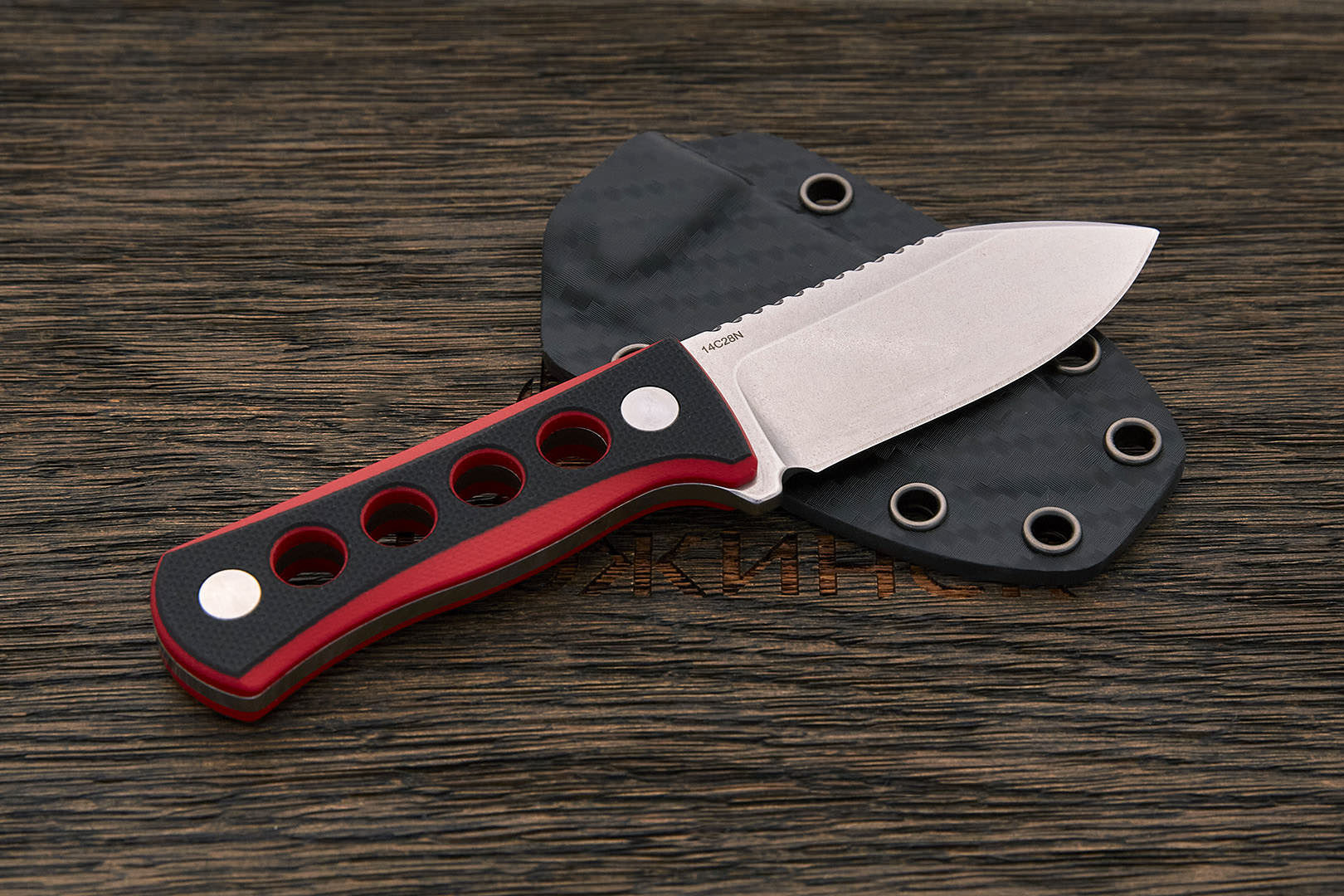 Sandvik 14С28N – азотистая коррозионностойкая сталь. Новейшая разработка концерна Sandvik. Благодаря оптимальному химическому составу эта сталь обладает уникальным набором свойств, позволяющим сочетать высокую твердость и способность долго сохранять режущую кромку без образования микросколов и замятий лезвия. Твердость стали Sandvik 14С28N после термообработки в интервале 55-62 HRC.