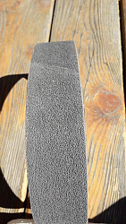 У этой ленты сразу обратил внимание на более крупный образив. Стал пробовать и результат понравился. Лента отлично удаляет риски не только от предыдущего, но и от более крупного зерна. После шлифовки ей, поверхность не зеркальная, а имеет легкий сатин. В принципе, можно вполне остановиться и на этом, так как такая обработка уже смотрится весьма неплохо. Но можно пойти и дальше и доработать поверхность с помощью пасты - например диалюкс серого цвета. И тогда можно получить результат близкий к зеркальному.