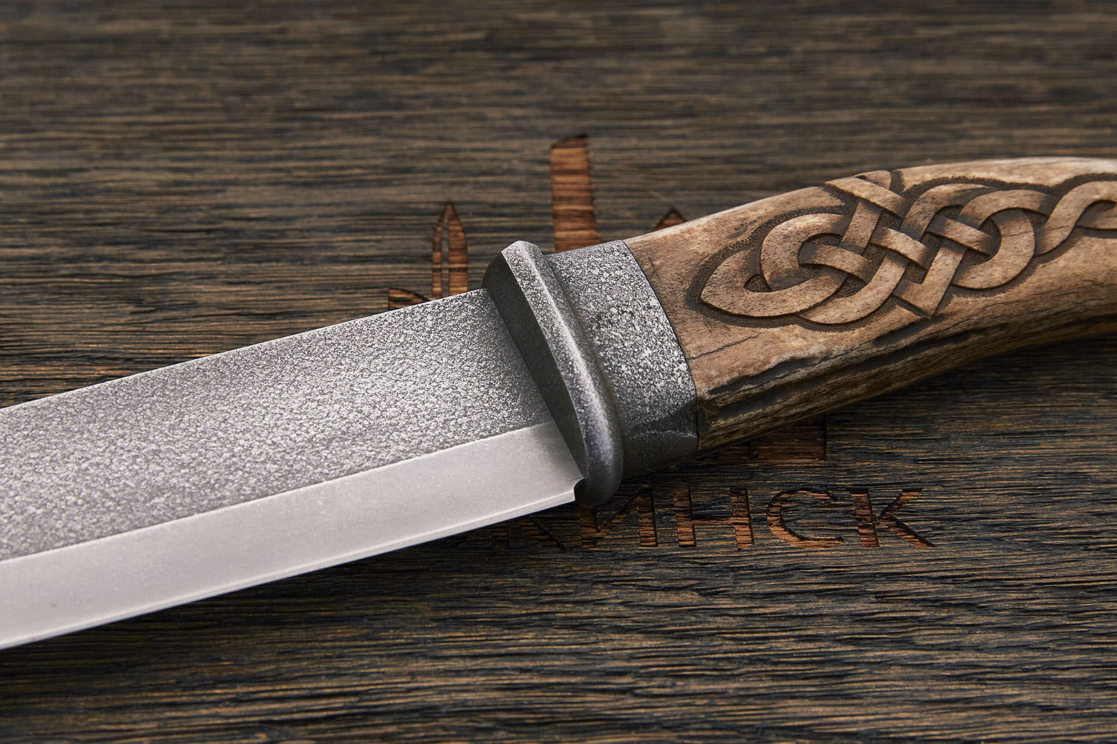 95Х18 – сложнолегированная мартенситная сталь отечественного производства, устойчивая к коррозии в атмосфере и умеренных агрессивных средах. Широко применяется в ножевом производстве, но достаточно сложна в обработке и требовательна к условиям ТО. При правильной термообработке сталь 95Х18 приобретает отличные режущие свойства и достигает твердости до 60-62 HRC. Обладает хорошей износостойкостью и прочностью. Сталь проста в обслуживании и не требует дополнительного ухода, хорошо полируется.