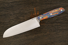 AUS-8 – среднеуглеродистая высоколегированная нержавеющая сталь. Разработана и производиться японской металлургической компанией Aichi Steel Works. При таком содержании углерода и хрома в структуре стали появляются эвтектические карбиды, однако их количество еще невелико. Благодаря этому, на высоком уровне остаются механические свойства, сталь легко шлифуется и полируется. Сталь очень стабильна, предсказуема и недорога. Однако благодаря своей структуре, при хорошей термообработке AUS-8 отличается высокой агрессивностью реза по мягким материалам. Оптимальная твердость 57-59 HRC.