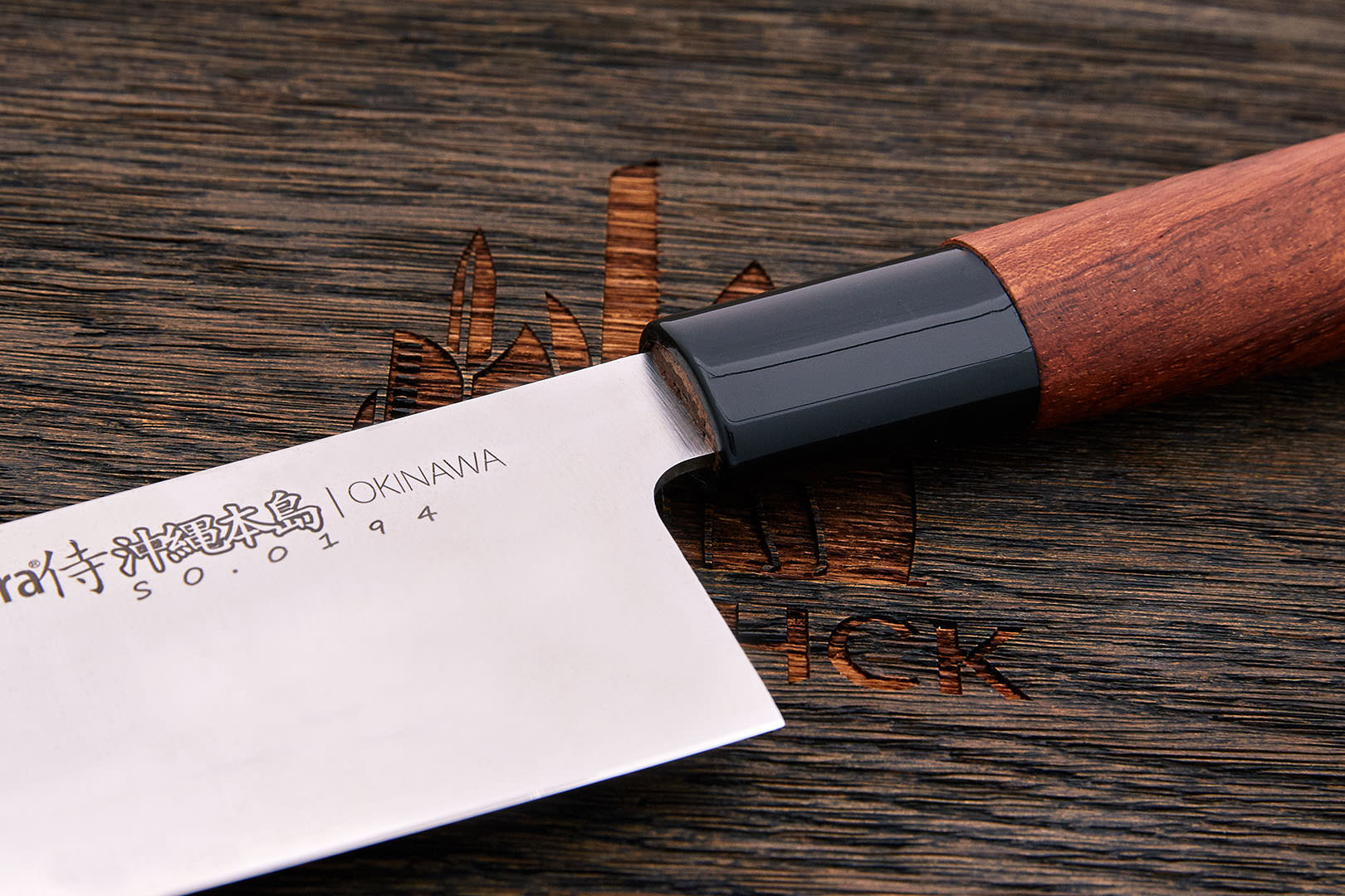AUS-8 – среднеуглеродистая высоколегированная нержавеющая сталь. Разработана и производиться японской металлургической компанией Aichi Steel Works. При таком содержании углерода и хрома в структуре стали появляются эвтектические карбиды, однако их количество еще невелико. Благодаря этому, на высоком уровне остаются механические свойства, сталь легко шлифуется и полируется. Сталь очень стабильна, предсказуема и недорога. Однако благодаря своей структуре, при хорошей термообработке AUS-8 отличается высокой агрессивностью реза по мягким материалам. Оптимальная твердость 57-59 HRC.