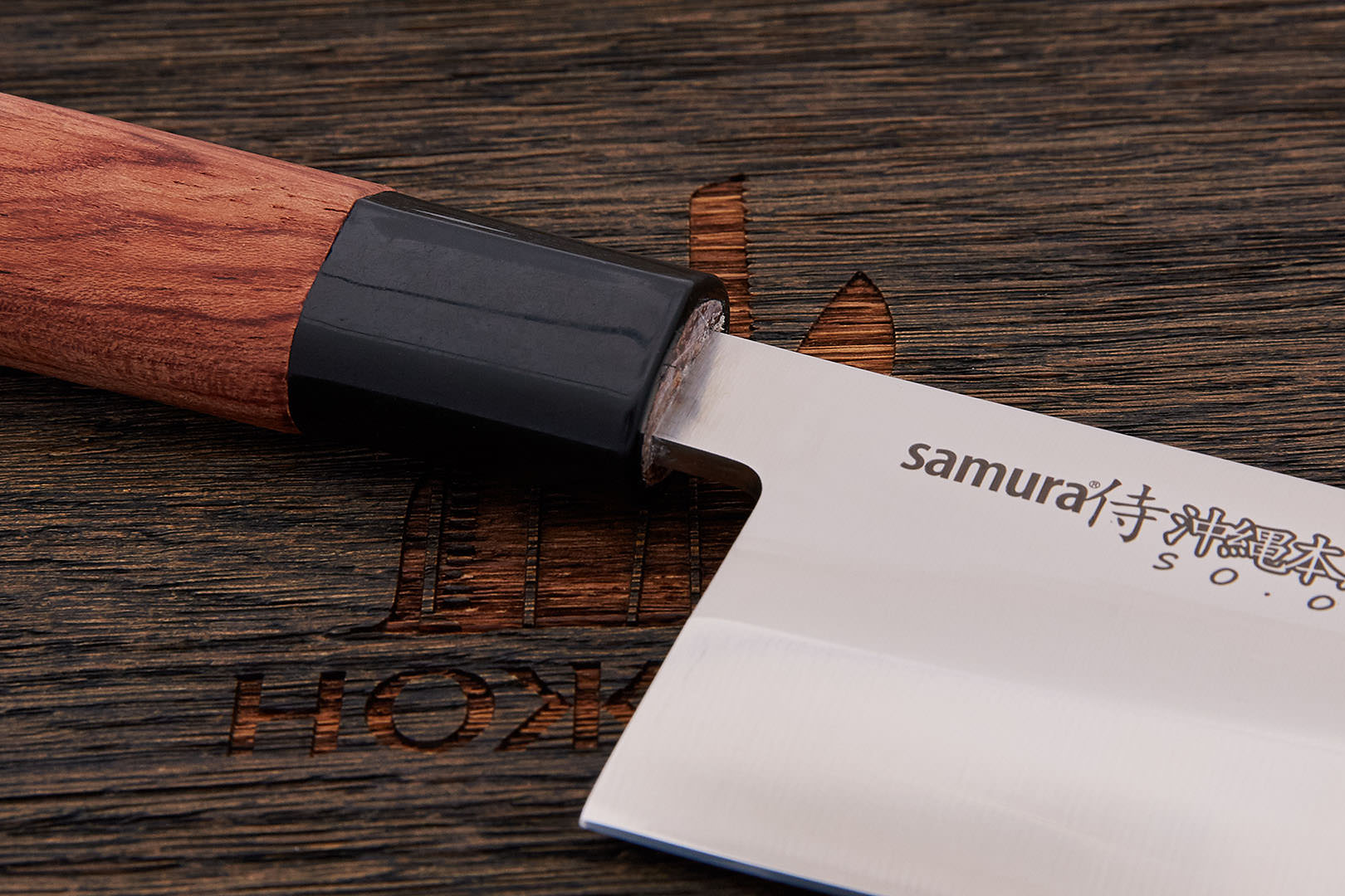 AUS-8 – среднеуглеродистая высоколегированная нержавеющая сталь. Разработана и производиться японской металлургической компанией Aichi Steel Works. При таком содержании углерода и хрома в структуре стали появляются эвтектические карбиды, однако их количество еще невелико. Благодаря этому, на высоком уровне остаются механические свойства, сталь легко шлифуется и полируется. Сталь очень стабильна, предсказуема и недорога. Однако благодаря своей структуре, при хорошей термообработке AUS-8 отличается высокой агрессивностью реза по мягким материалам. Оптимальная твердость 57-59 HRC.