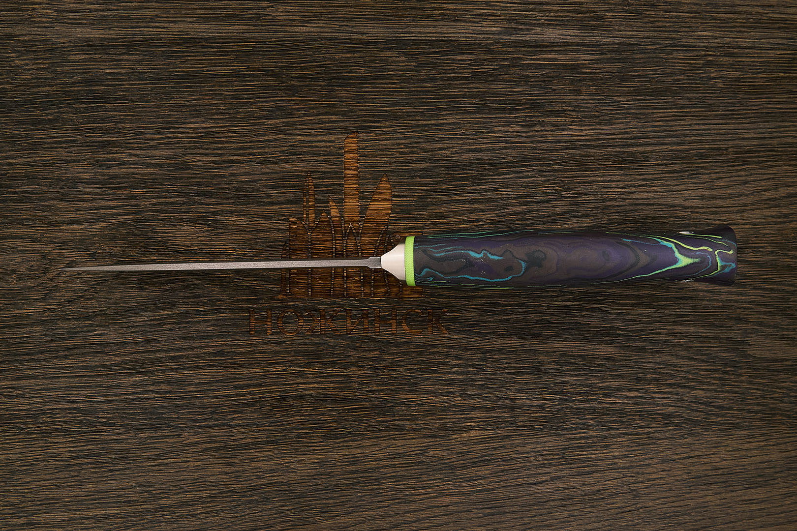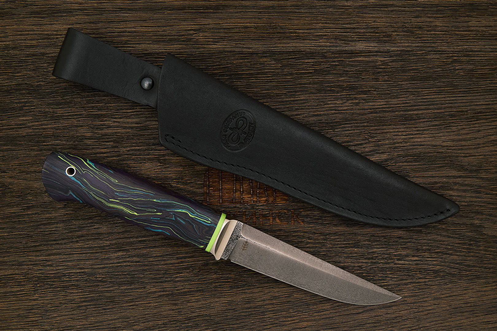 Микарта – очень прочный конструкционный материал, представляющий собой слоистый пластик на основе ткани и фенолформальдегидных или эпоксидных смол. Слои ткани пропитываются и склеиваются под высоким давлением и температурой. Благодаря совокупности потребительских свойств micarta (текстолит) прекрасно подходит для изготовления рукоятей ножей. Прочная, не впитывает ни воду, ни запахи, тактильная и высоко декоративная за счет разнообразия текстур и цветов. По теплопроводности микарта близка к натуральному дереву, что позволяет достаточно комфортно использовать ножи на сильном морозе.