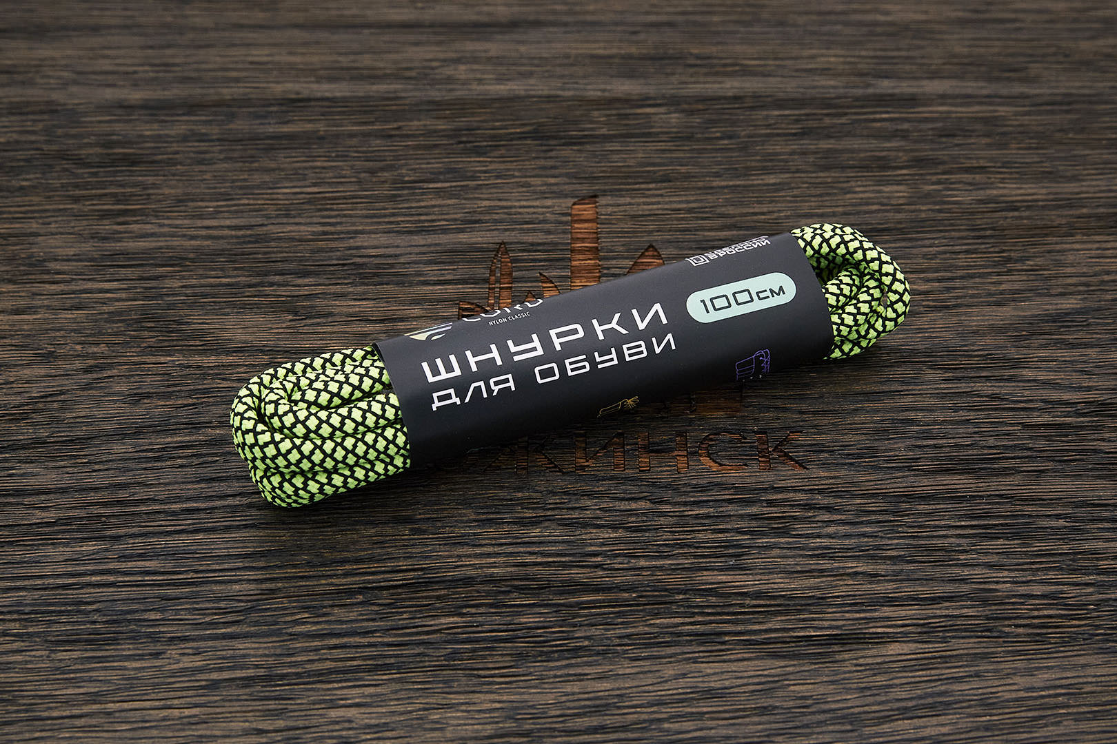 Шнурки для обуви, 100см, зеленые неон/черная сетка | Арт L-100 07