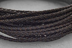 Кожаный плетеный шнурок 3,0мм (тёмно-коричневый), 1 метр