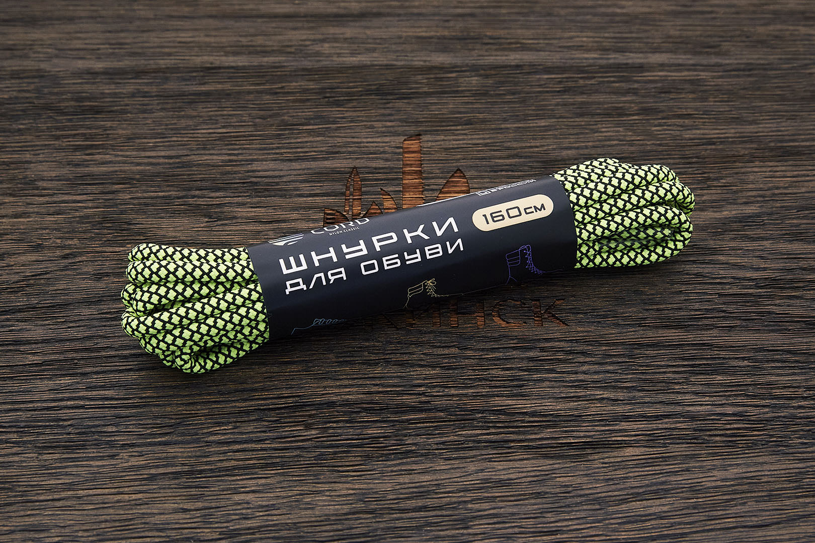 Шнурки для обуви, 160см, зеленые неон/черная сетка | Арт L-160 07