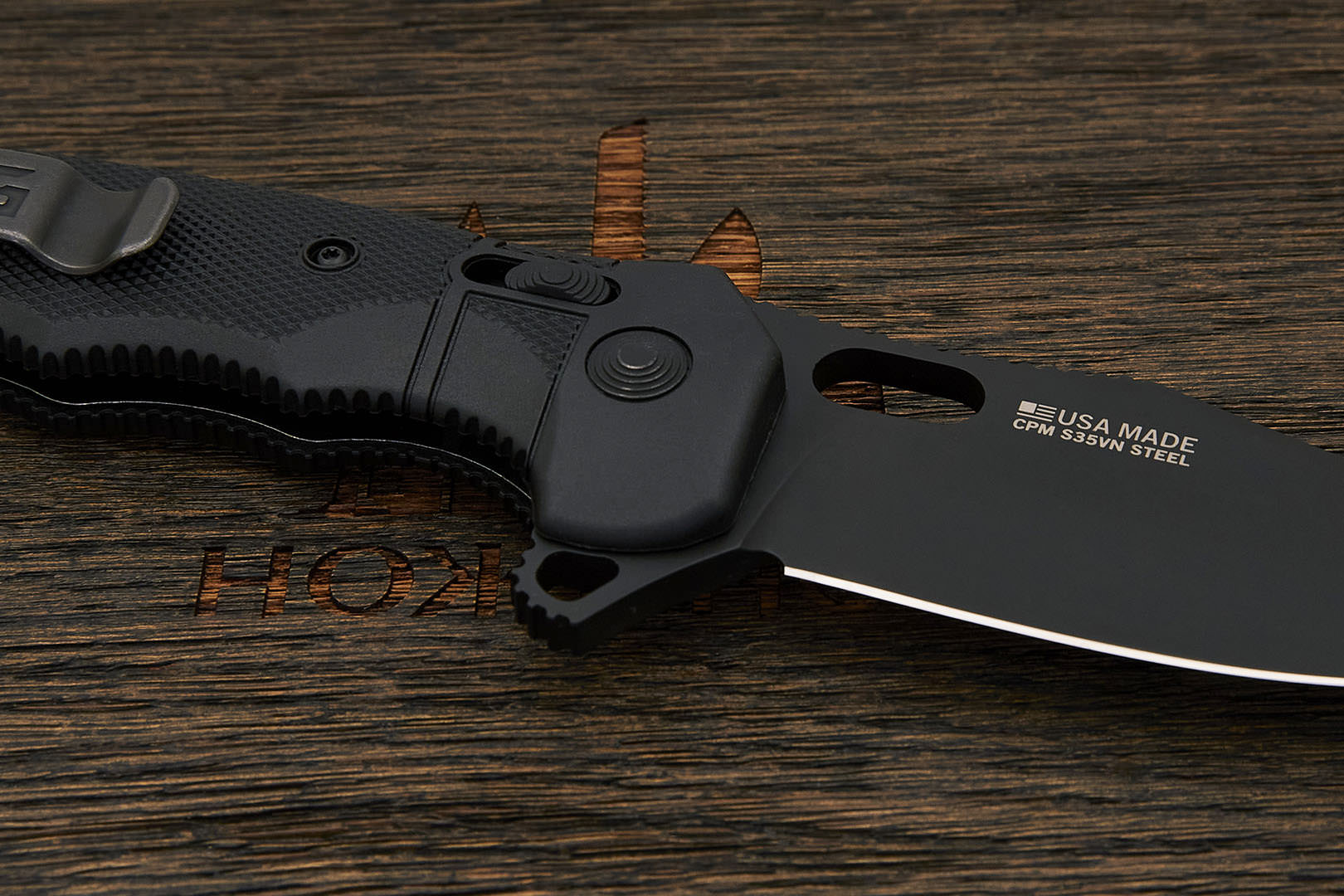 CPM S35VN – рестайлинговая версия хорошо зарекомендовавшей себя порошковой стали S30V от американского концерна Crucible Industries. Особенностью этой стали является легирование ниобием, что становится модной тенденцией и обеспечивает несколько лучшую механику. За счет мелких карбидов ниобия S35VN на 15-20% более прочная и износостойкая, чем S30V, хотя стали и находятся в одной ценовой категории. Благодаря ниобию клинки из S30VN превосходно держат заточку. Сталь активно применяется ножевыми компаниями по всему миру в среднем ценовом сегменте.