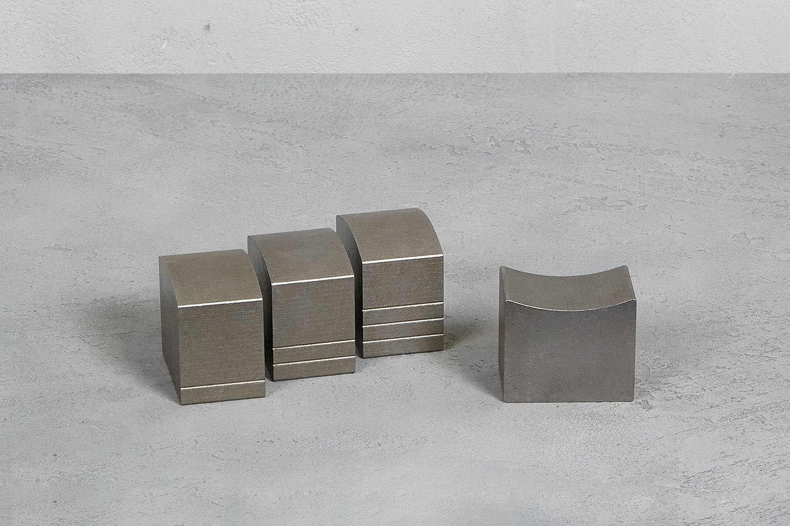 Комплект штампов для изготовления радиусных больстеров включает в себя один штамп с вогнутым диаметром 100мм и 3 ответных штампа с кривизной d98 mm (одна полоса), d97 mm (две полосы), d96 mm (три полосы).