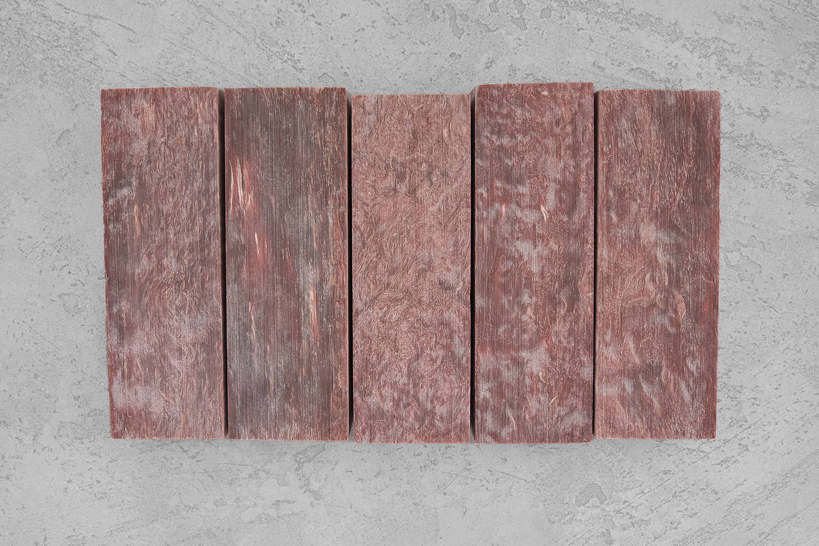 Приблизительные размеры бруска 132×30×44 мм. На фотографии представлен образец, максимально соответствующий среднему бруску из партии, но фактическая текстура и тон каждой заготовки для рукояти будет незначительно отличаться.