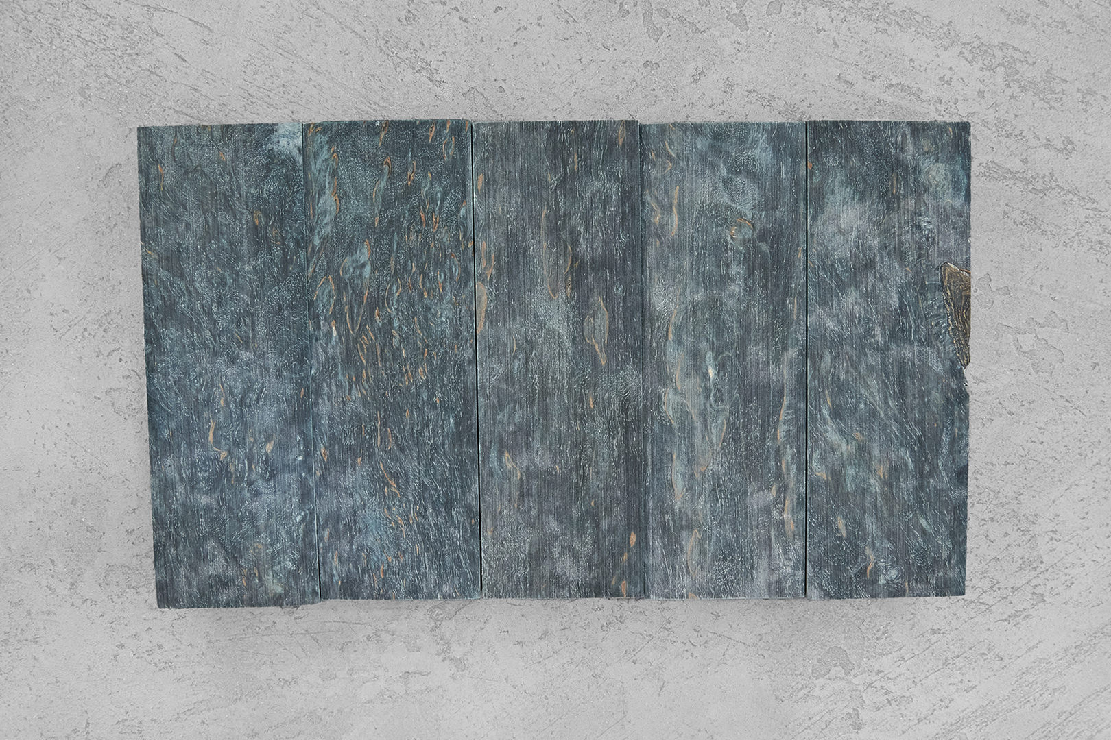 Приблизительные размеры бруска 132×31×45 мм. На фотографии представлен образец, максимально соответствующий среднему бруску из партии, но фактическая текстура и тон каждой заготовки для рукояти будет незначительно отличаться.
