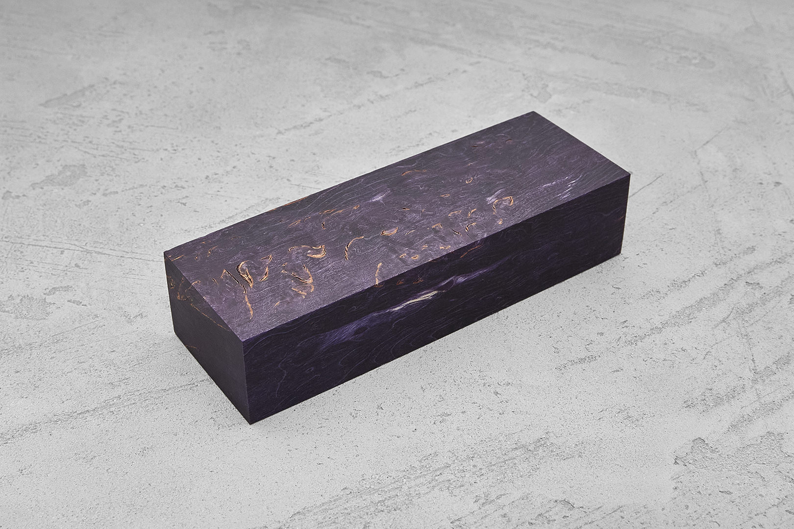 Приблизительные размеры бруска 129×28×44 мм. На фотографии представлен образец, максимально соответствующий среднему бруску из партии, но фактическая текстура и тон каждой заготовки для рукояти будет незначительно отличаться.
