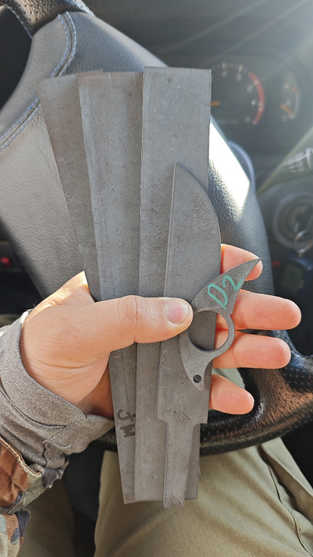 Полоса-заготовка для ножа изготовлена из листового проката порошковой стали JM390A (идентичной M390) методом гидроабразивной резки.