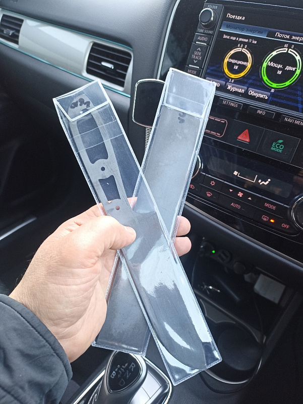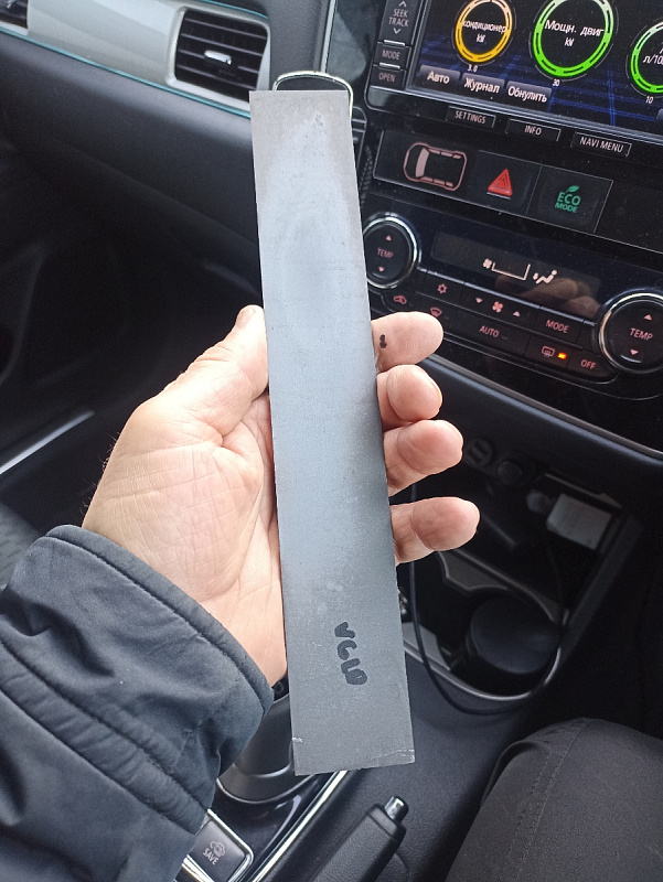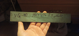Полоса-заготовка для ножа вырезана из листового проката стали VG-10 Cobalt производства Ahonest Changjiang методом гидроабразивной резки.