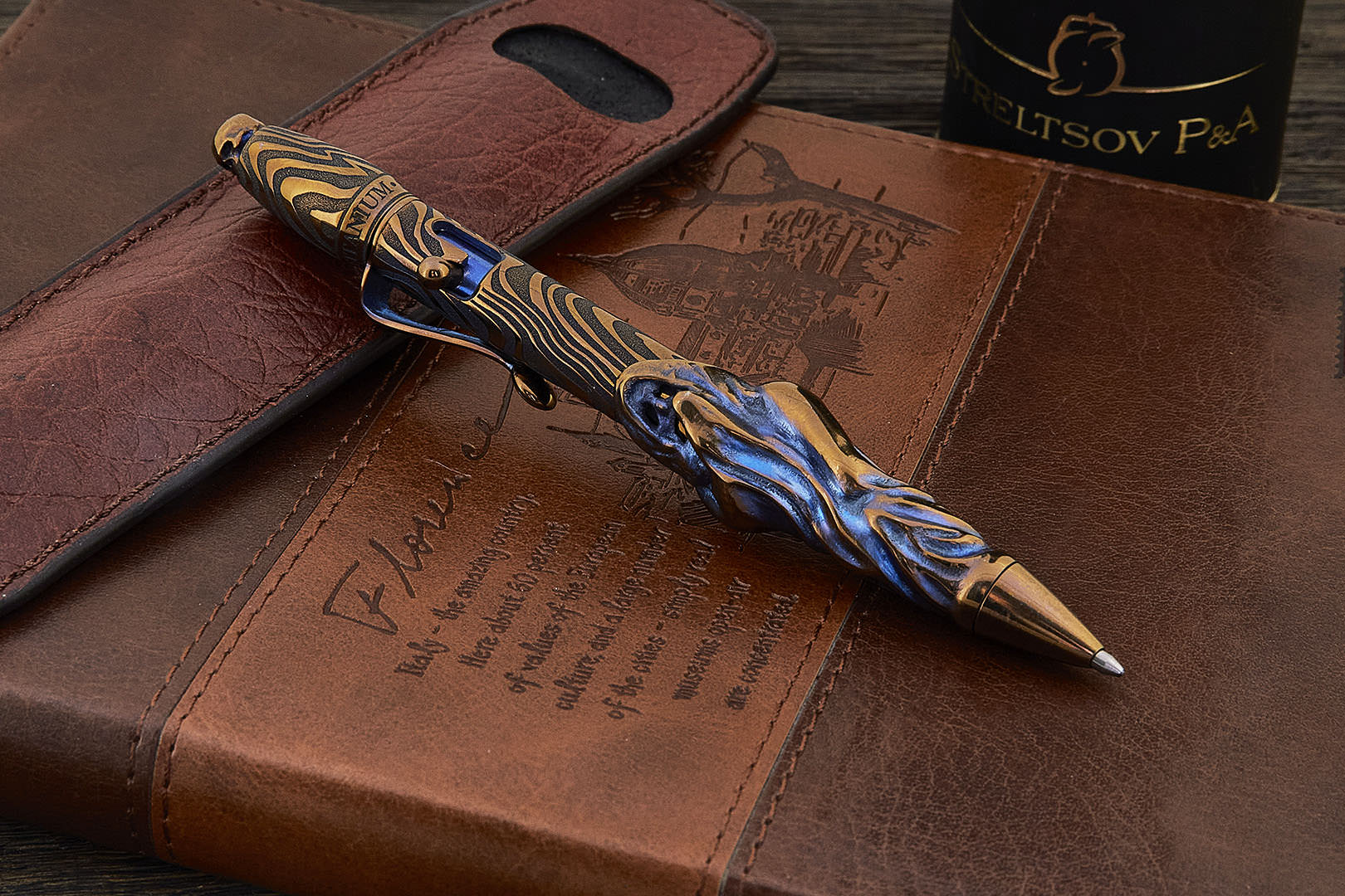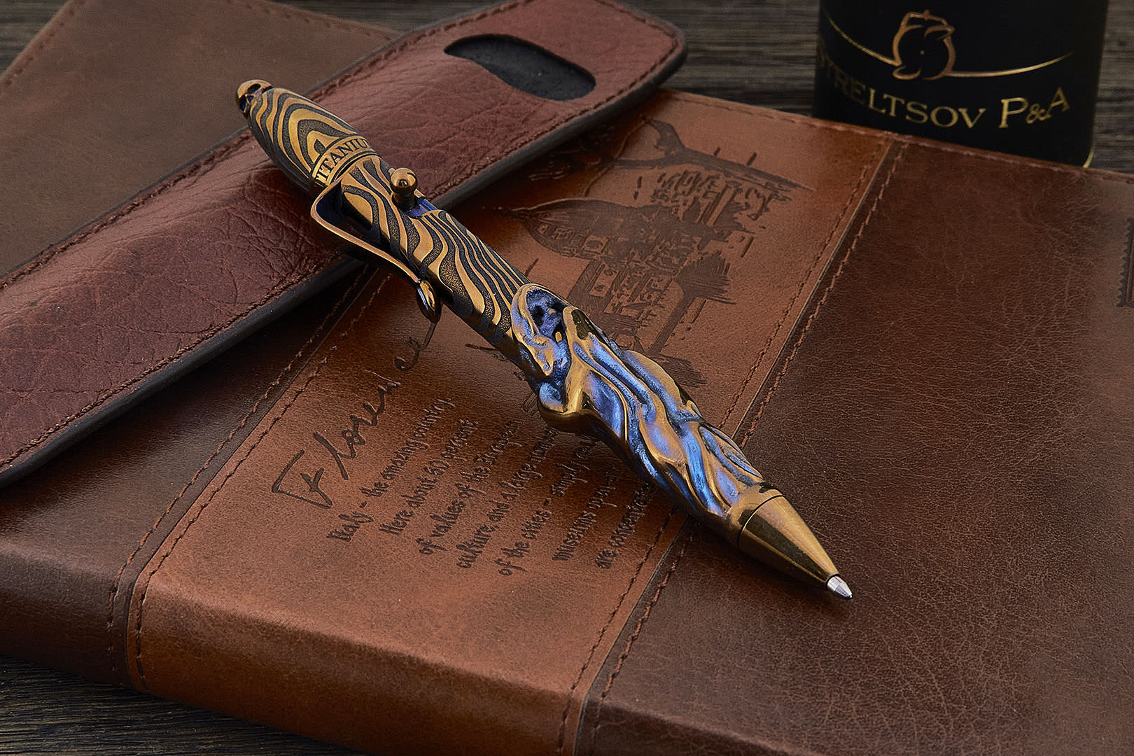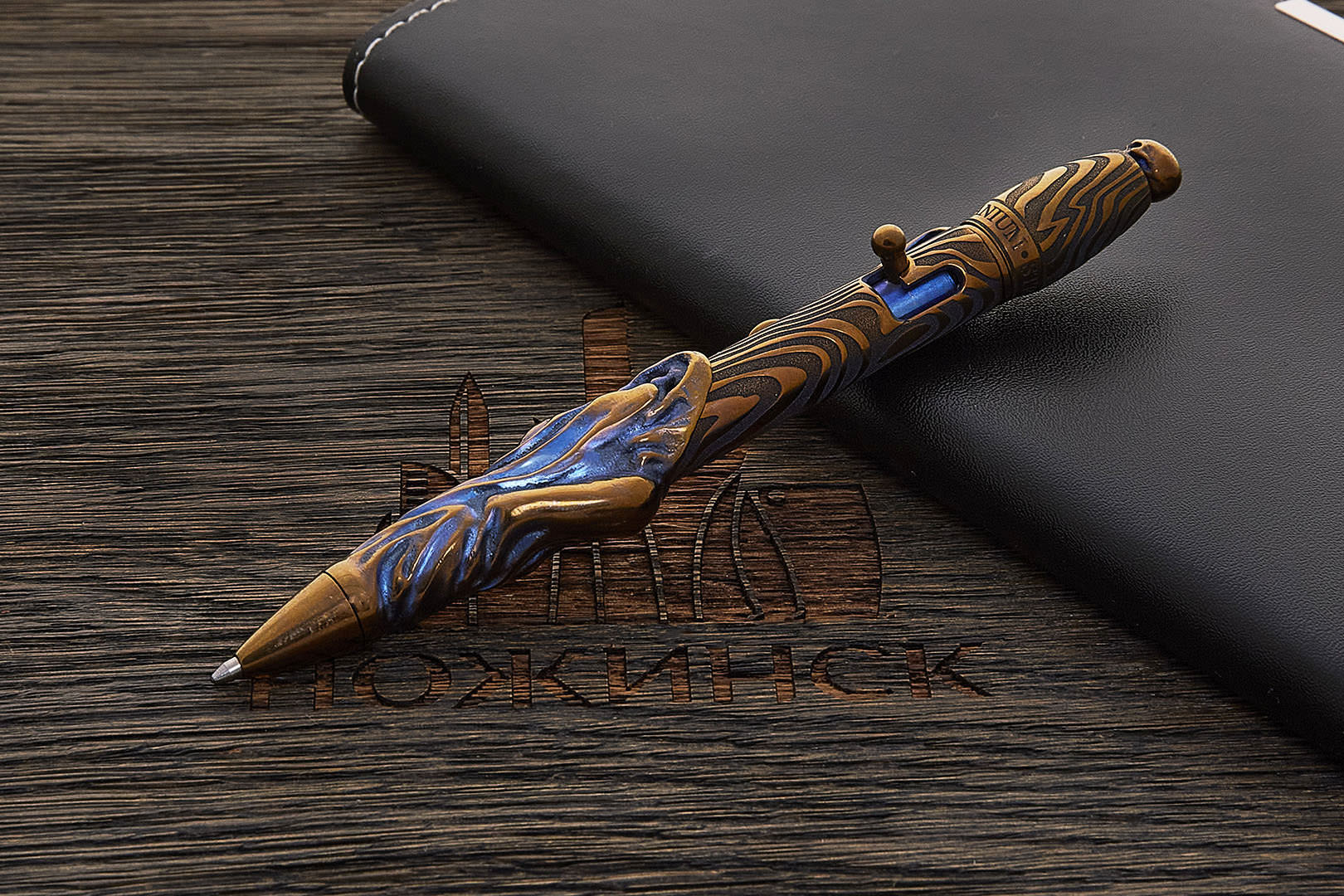 Авторская титановая ручка Дмитрия Стрельцова «Амелия» с затвором (лоскуты)