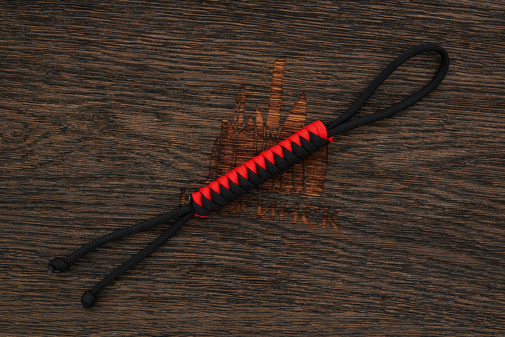 Темляк овального плетения 'Змейка' изготовлен из паракорда Type-III 550 cord "Black + Red". Размеры: