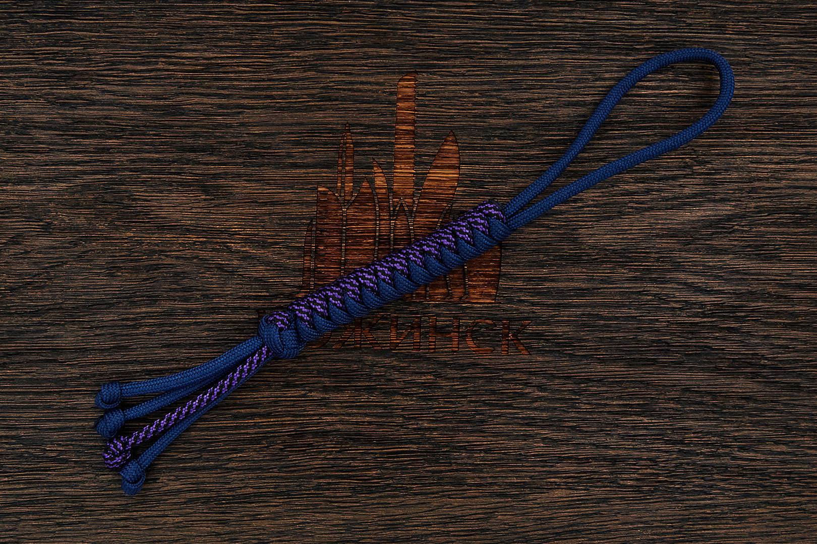 Темляк овального плетения 'Змейка' изготовлен из паракорда Type-III 550 cord "Navy + BlackSpiral purple". Размеры: