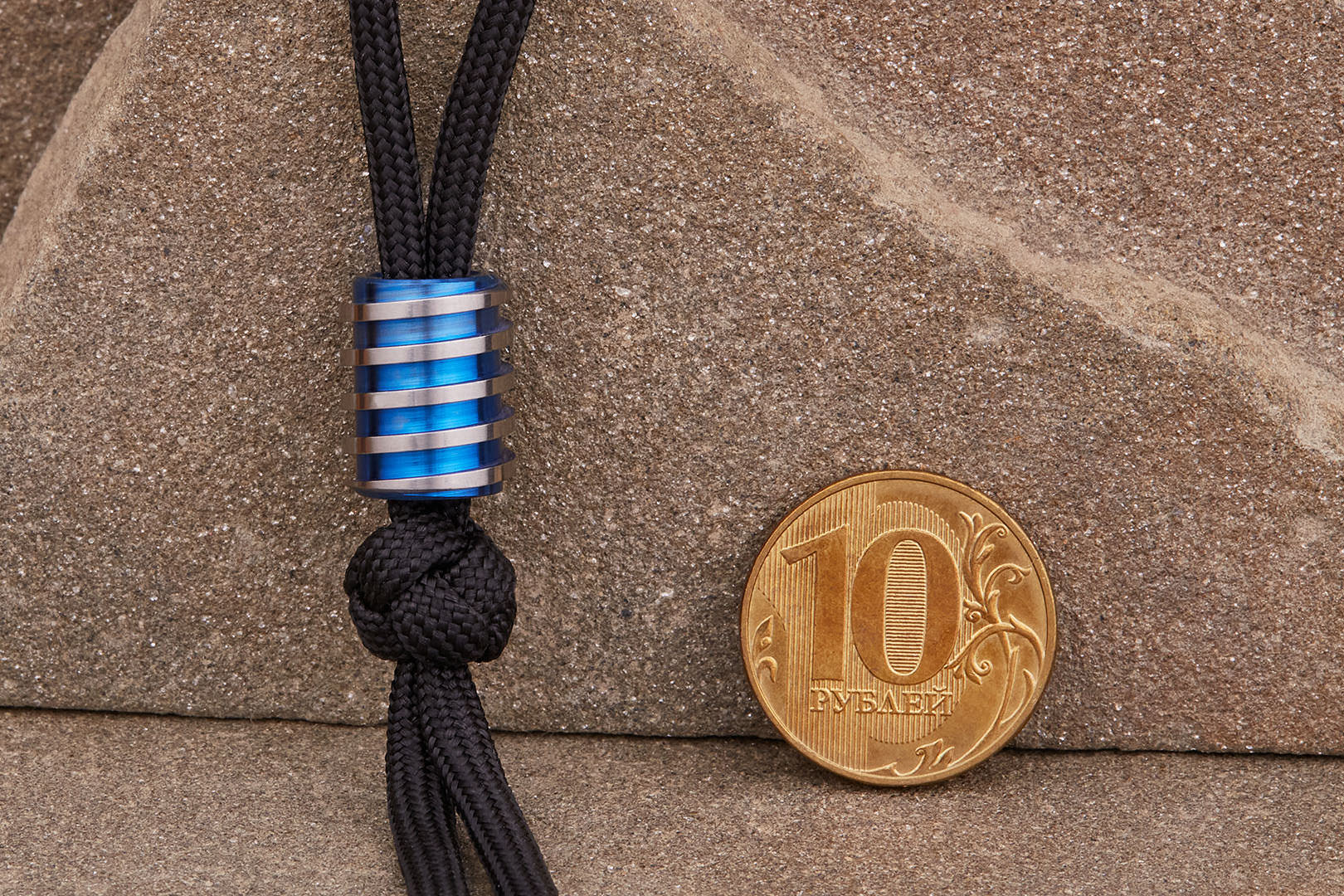 Титановая бусина на темляк XL «Спираль» синий