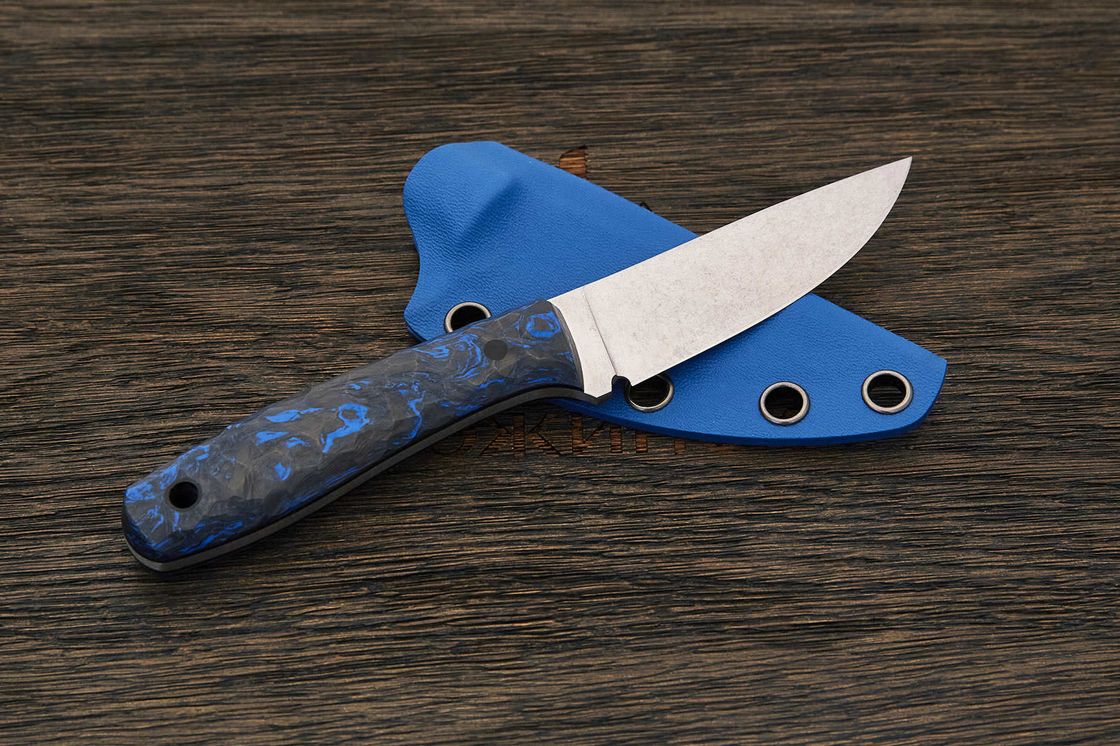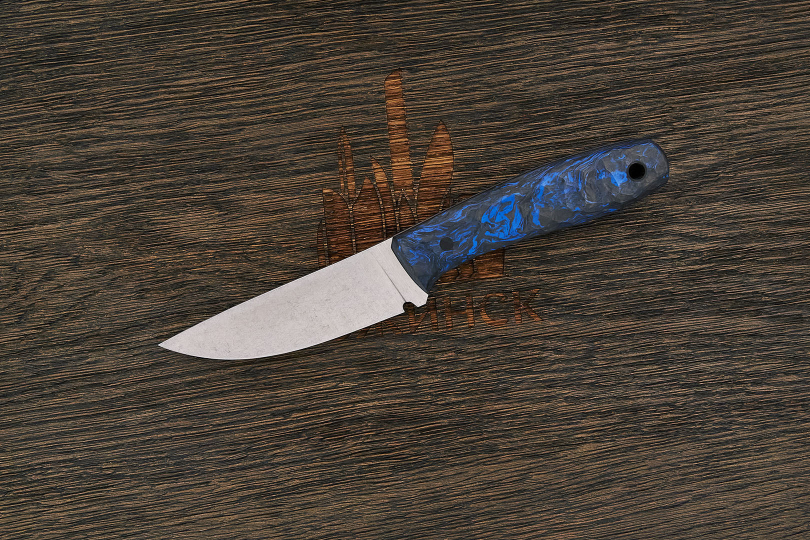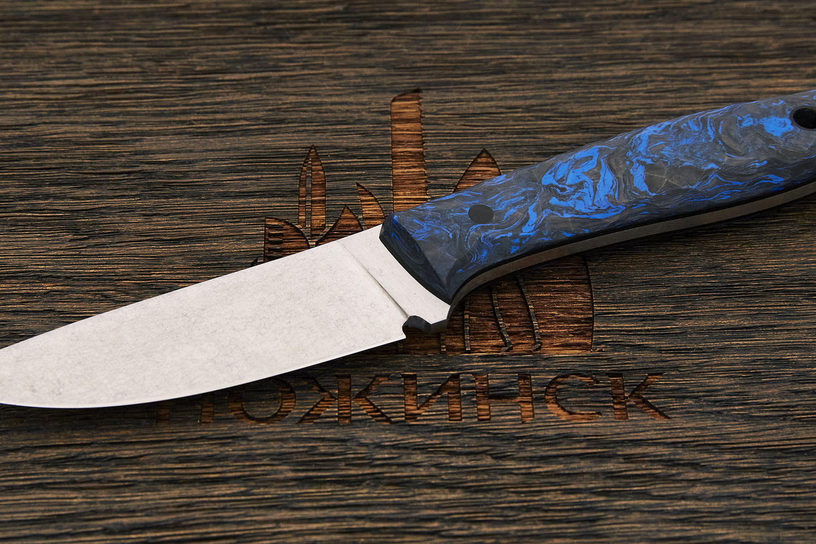 На сегодняшний день карбон один из лучших материалов для изготовления рукоятей ножей. Строгий по фактуре, нейтральный по цвету от светло-серого до почти черного, он практически не скользит в руке. Чрезвычайно прочный, абсолютно не впитывает ни воду, ни запахи, отлично переносит перепады влажности и температуры. Пожалуй, единственный его недостаток — сложная технология производства и, как следствие, высокая цена.