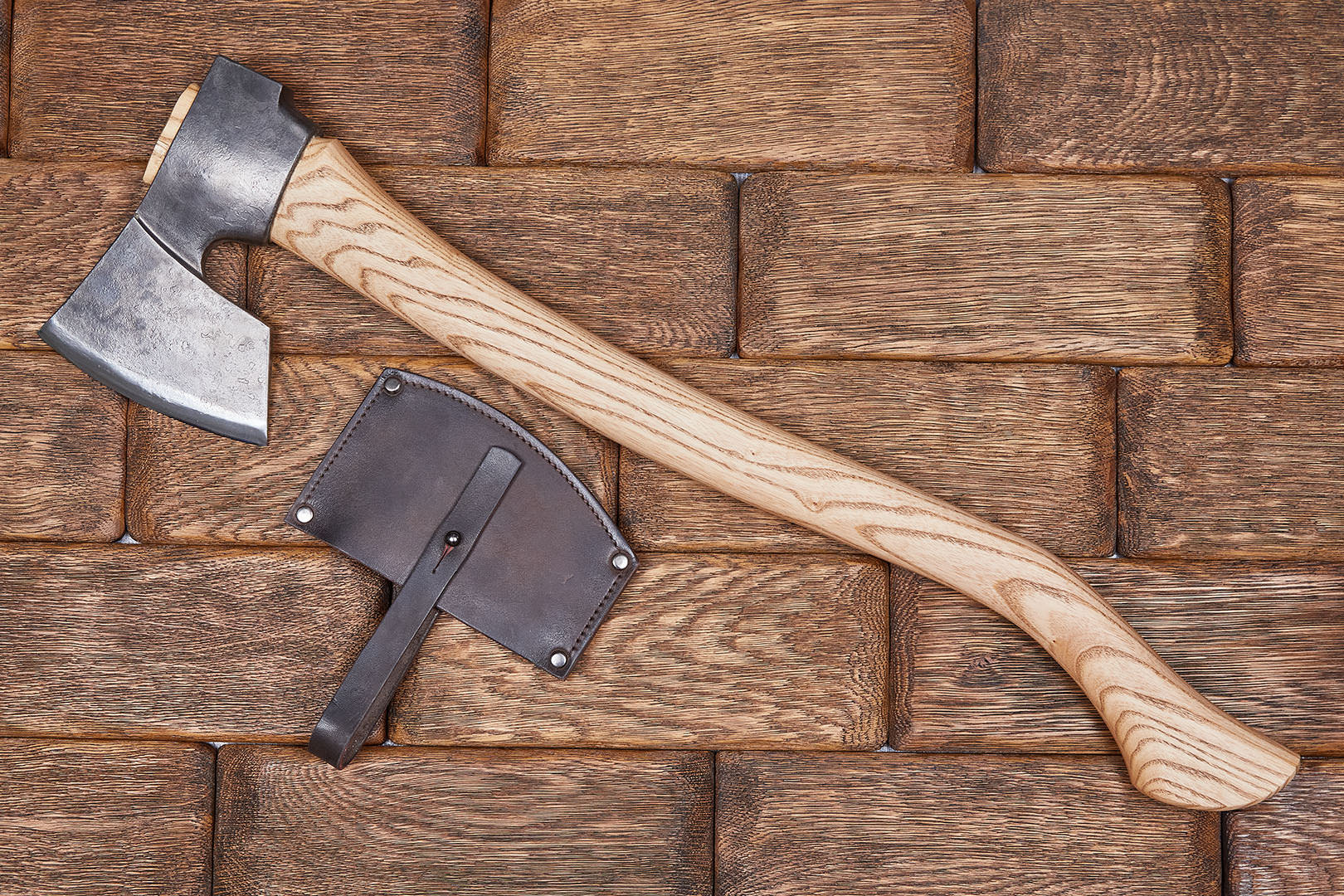 Топор укомплектован защитным чехлом из натуральной кожи.