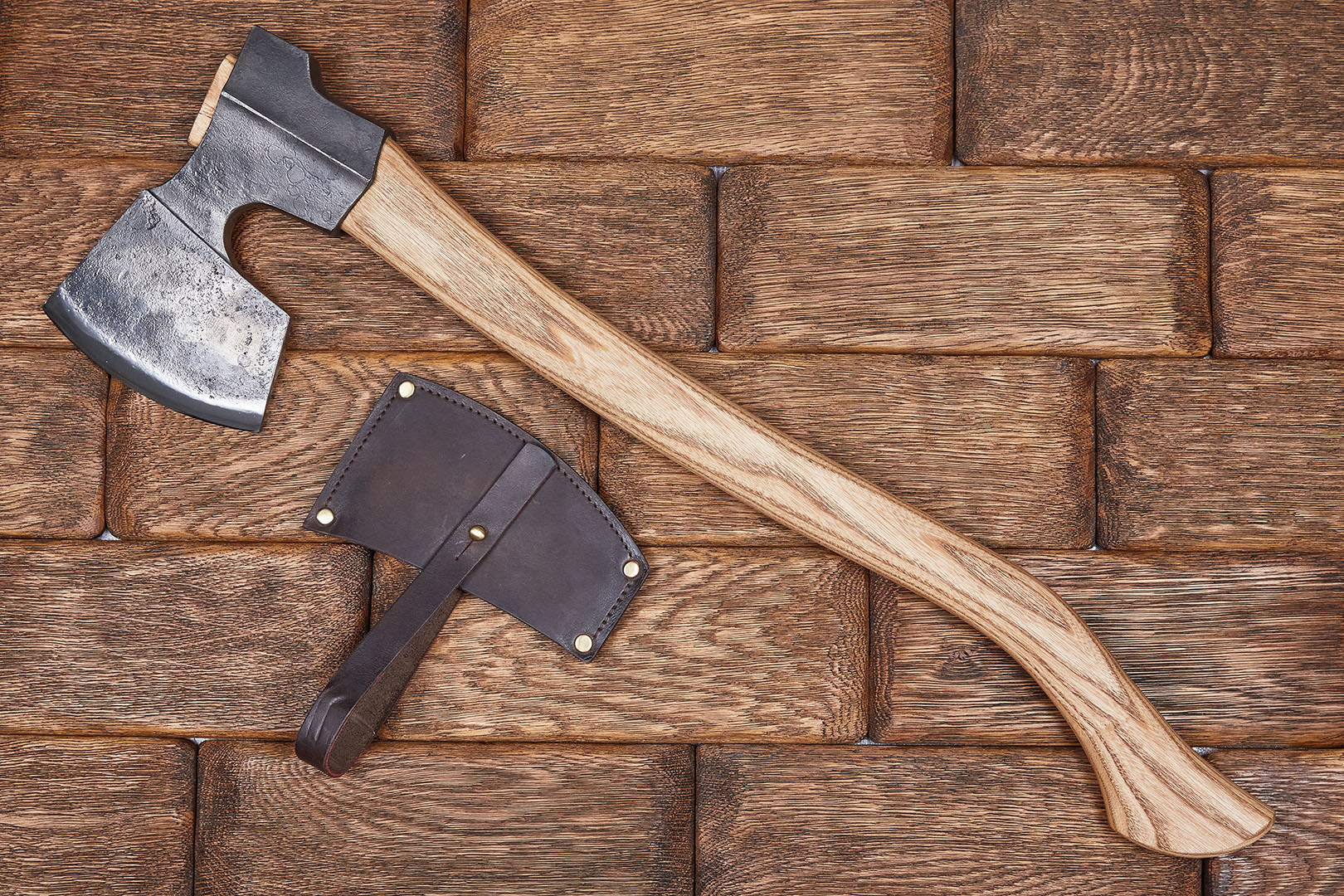 Топор укомплектован защитным чехлом из натуральной кожи.