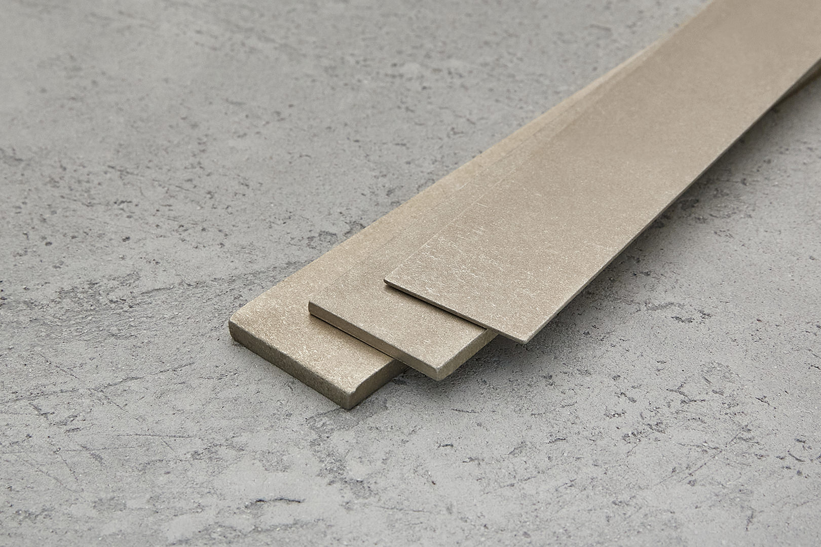 Полоса нейзильбера марки МНЦ15-20 размером 300±3×30 мм и толщиной 5,0 мм для изготовления больстеров, тыльников и проставок рукоятей ножей. Полоса вырезана методом гидроабразивной резки и не имеет характерных для рубки деформаций и дефектов по краям.