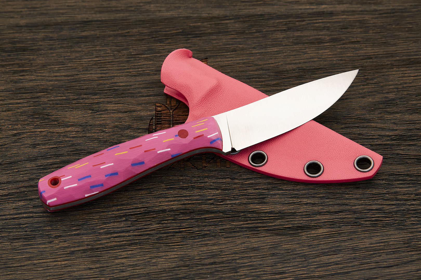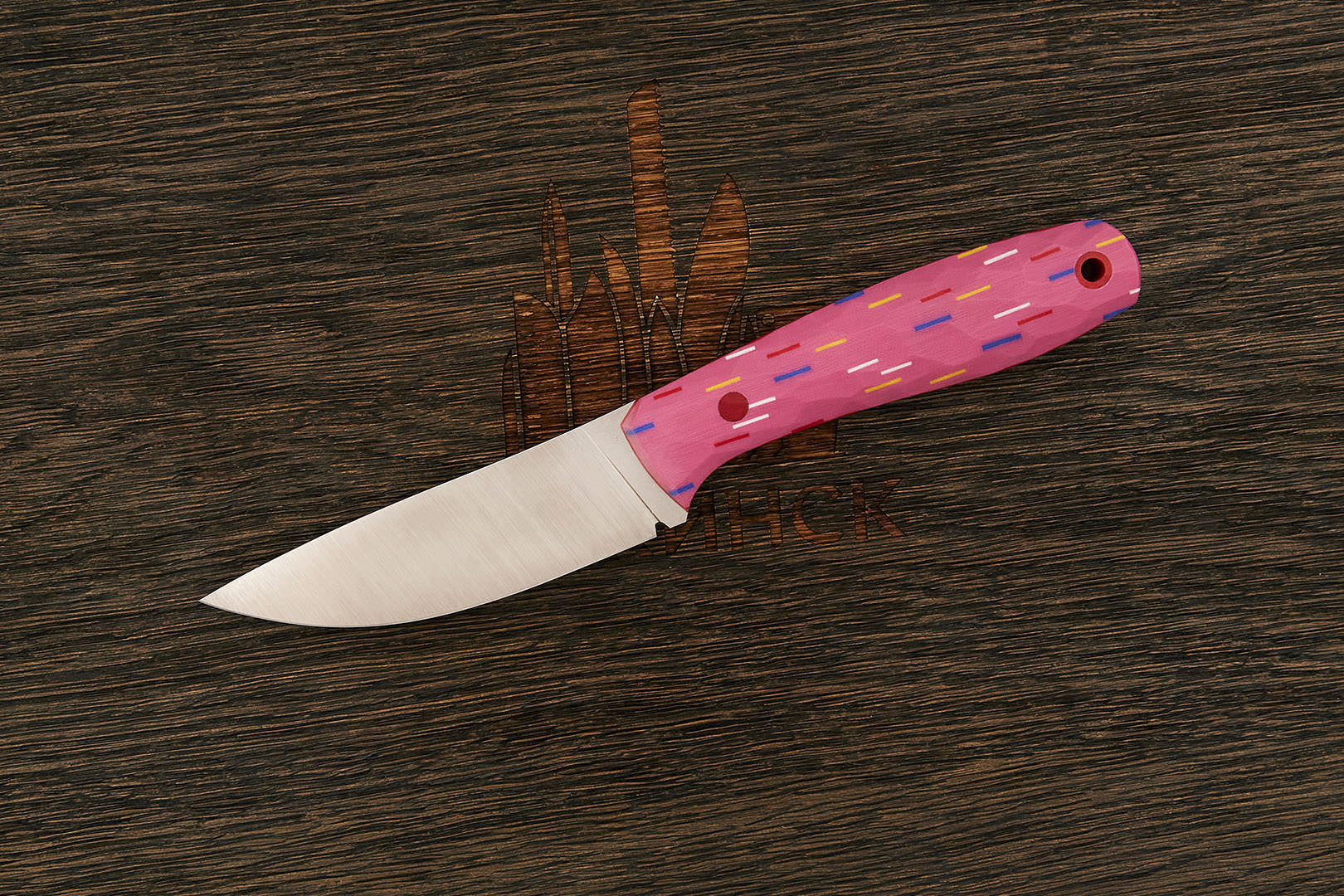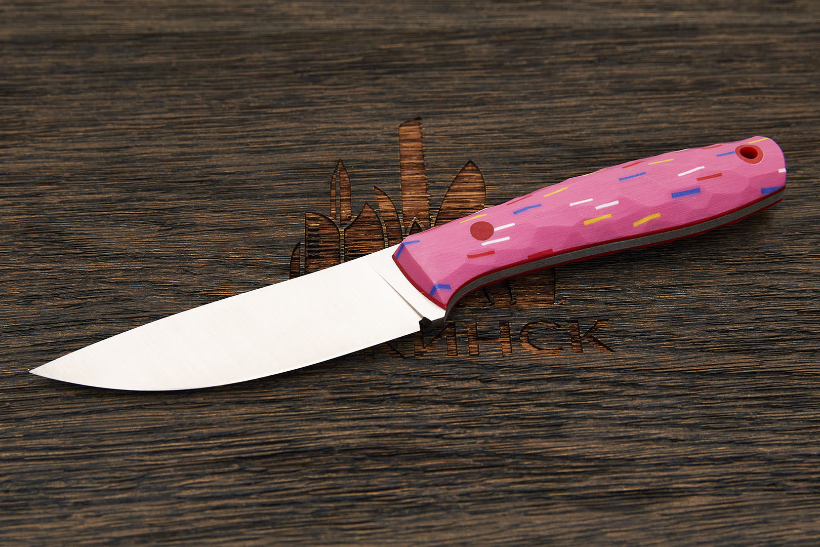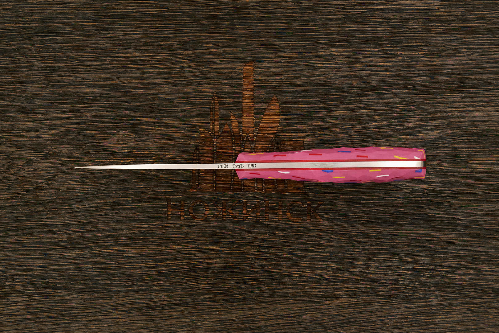 Elmax – одна из лучших инструментальных коррозионностойких порошковых сталей. Выпускается австрийско-шведской компанией Böhler-Uddeholm по технологии третьего поколения (superclean), что означает повышенную чистоту и вязкость. В составе карбиды небольшого размера, которые способствуют агрессивному резу. Сталь не капризна в заточке, долго удерживает остроту режущей кромки. При качественной термообработке Elmax всегда превосходит аналоги по вязкости, устойчива к воздействию внешней среды. Такой комплекс свойств обеспечивает изготовленным из нее ножам отличные потребительские качества.