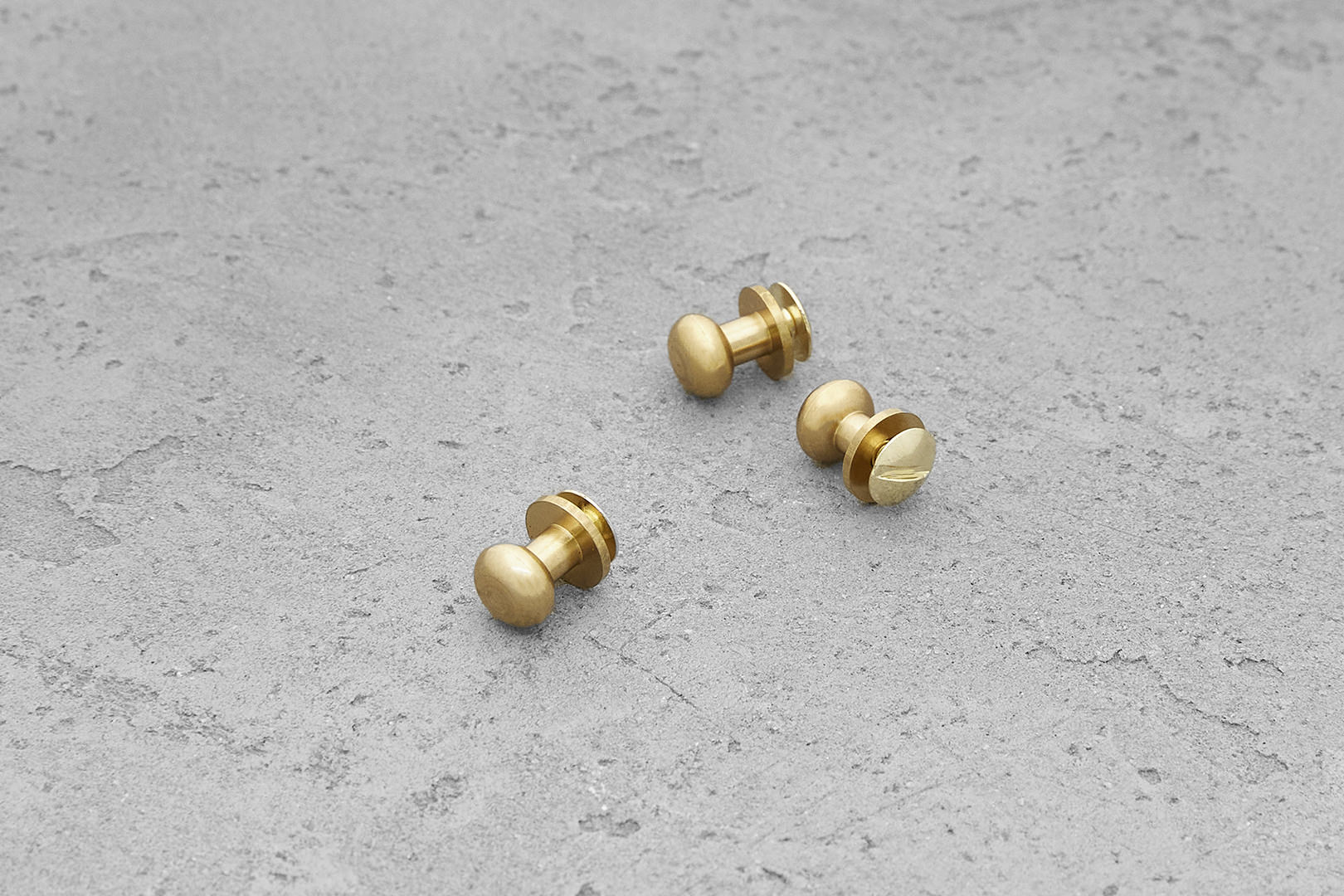 Кобурная кнопка с корпусом изготовленным из латуни и стальным винтом. Покрыта защитным покрытием. Цвет: желтая латунь.