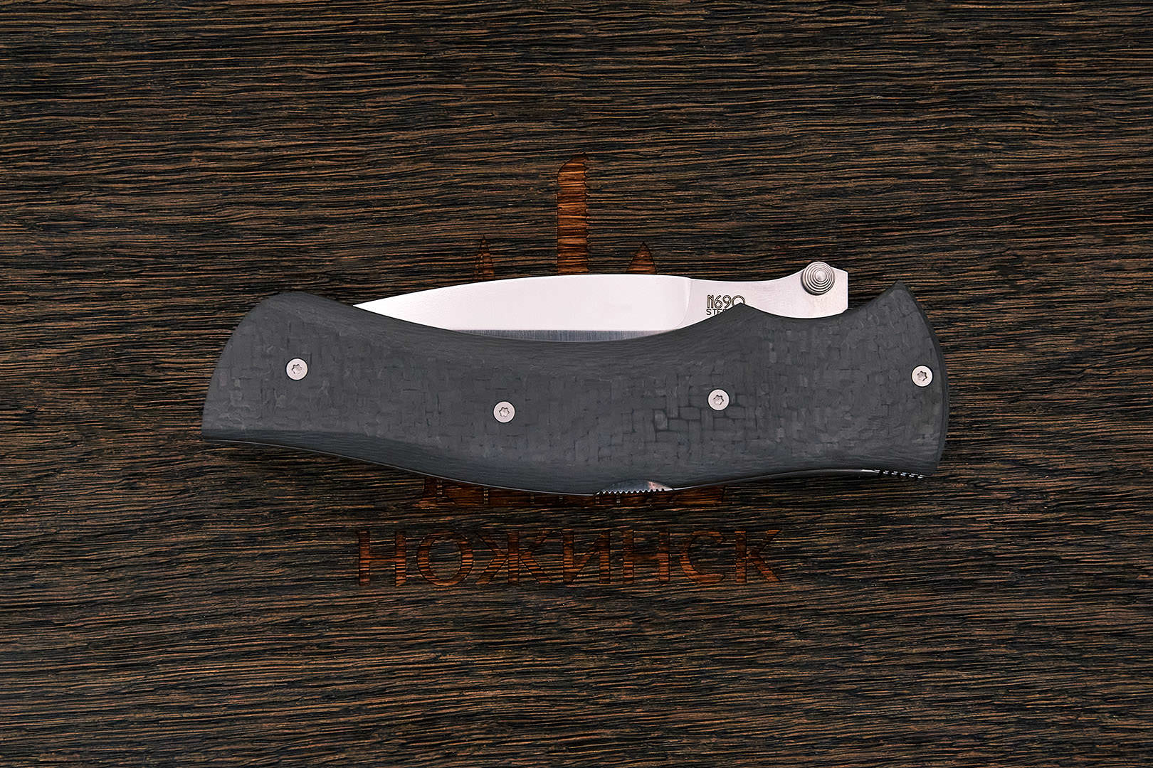 N690Co (N690) – коррозионностойкая немецкая инструментальная сталь производства Bohler-Uddeholm AG. Легирование кобальтом позволило улучшить сопротивляемость к высоким температурам и повысить общие механические качества.