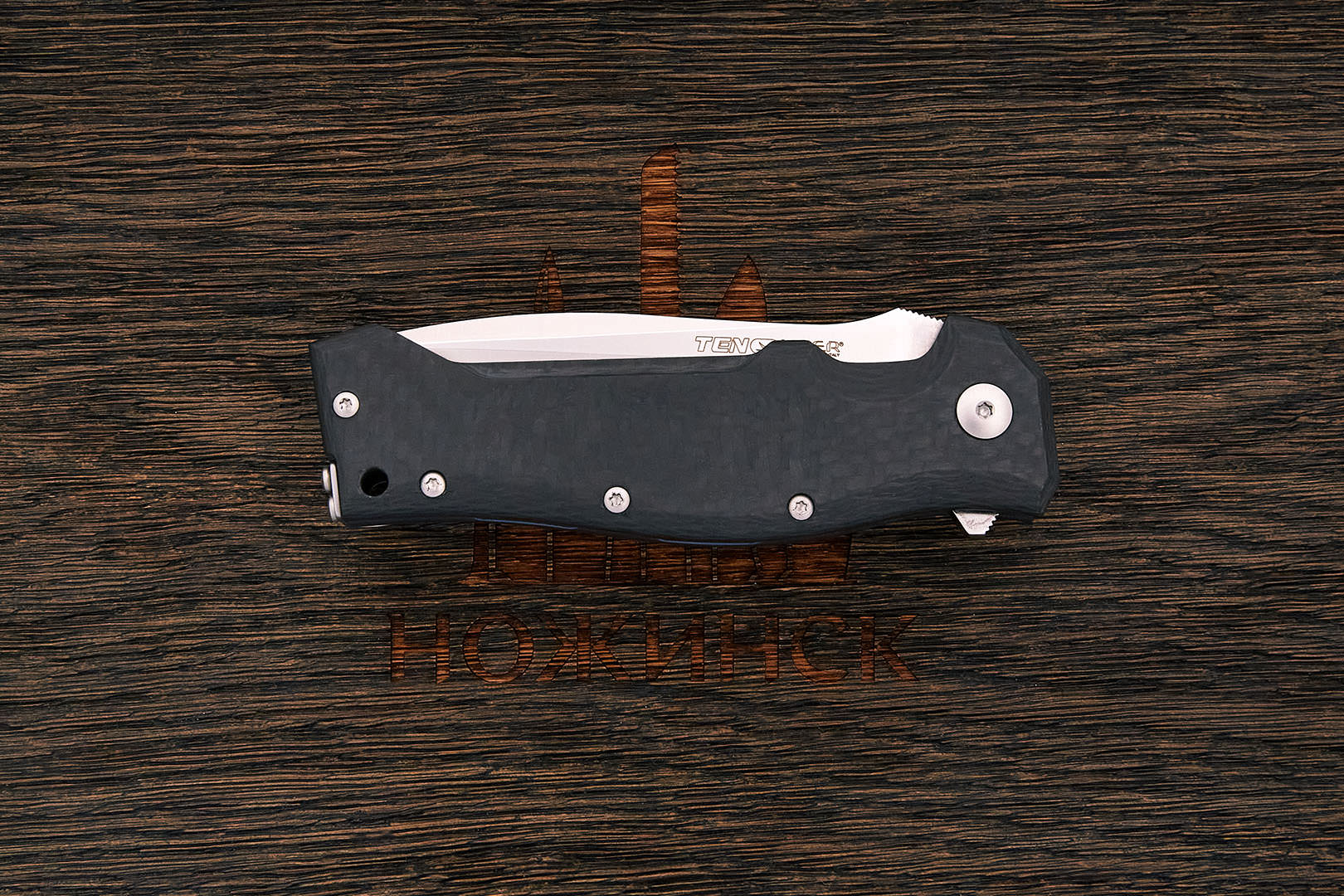 На сегодняшний день карбон один из лучших материалов для изготовления рукоятей ножей. Строгий по фактуре, нейтральный по цвету от светло-серого до почти черного, он практически не скользит в руке. Чрезвычайно прочный, абсолютно не впитывает ни воду, ни запахи, отлично переносит перепады влажности и температуры. Пожалуй, единственный его недостаток — сложная технология производства и, как следствие, высокая цена.