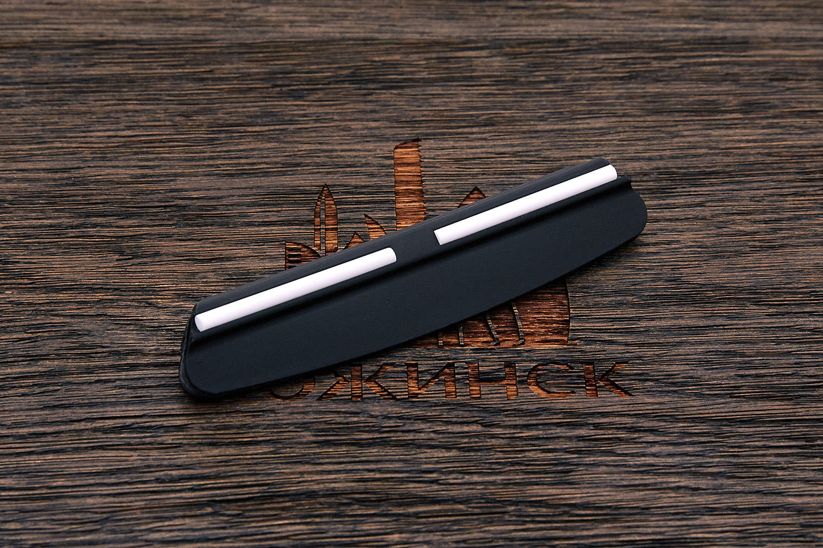 Держатель предназначен для того, чтобы при заточке задавать оптимальный для кухонных ножей угол заточки. Подходит для ножей с толщиной обуха до 3мм и шириной лезвия от 20мм.