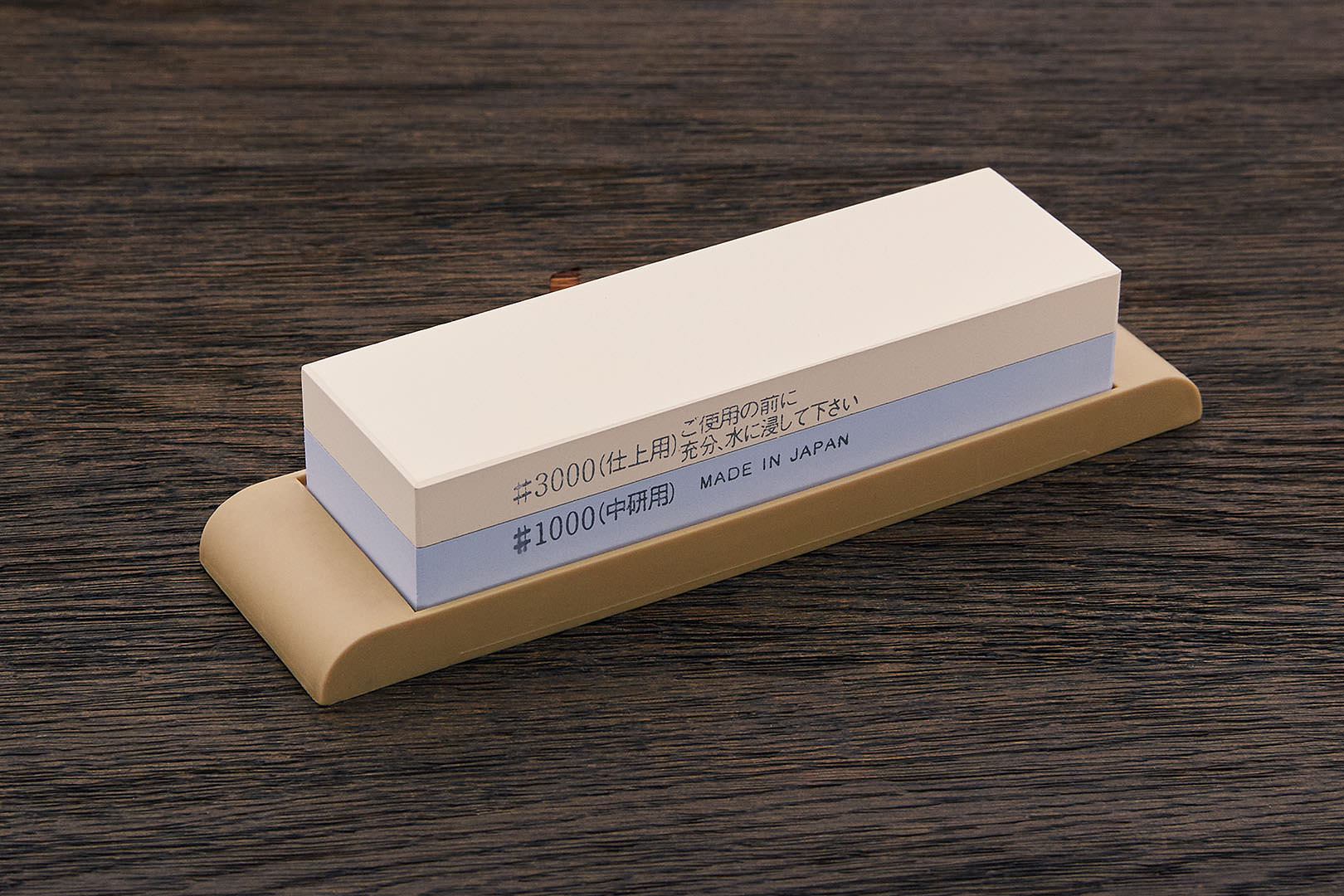 Водный точильный камень 130×40×24мм #3000/#1000 с подставкой | Арт Suehiro SKG-38