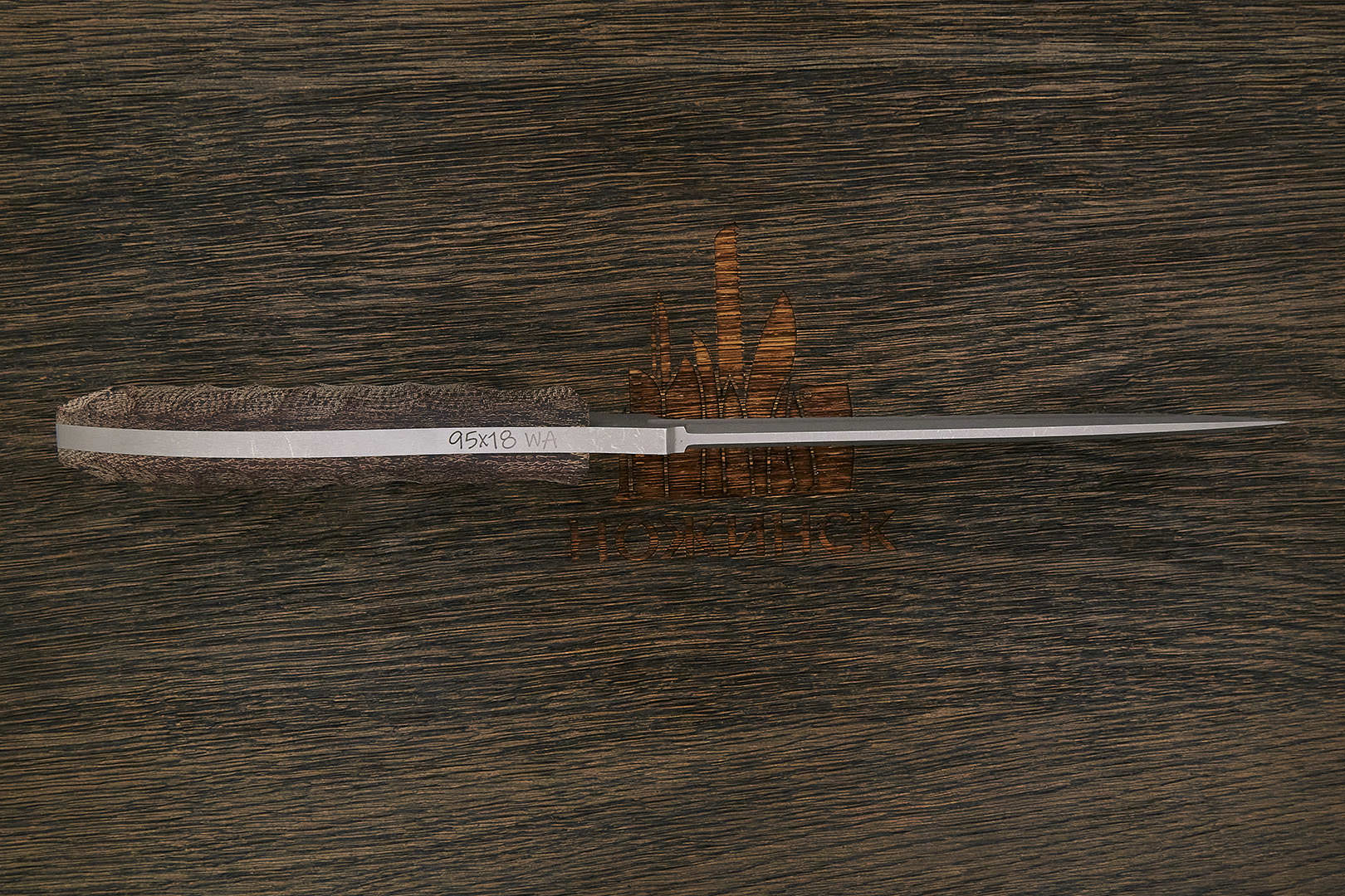 95Х18 – сложнолегированная мартенситная сталь отечественного производства, устойчивая к коррозии в атмосфере и умеренных агрессивных средах. Широко применяется в ножевом производстве, но достаточно сложна в обработке и требовательна к условиям ТО. При правильной термообработке сталь 95Х18 приобретает отличные режущие свойства и достигает твердости до 60-62 HRC. Обладает хорошей износостойкостью и прочностью. Сталь проста в обслуживании и не требует дополнительного ухода, хорошо полируется.