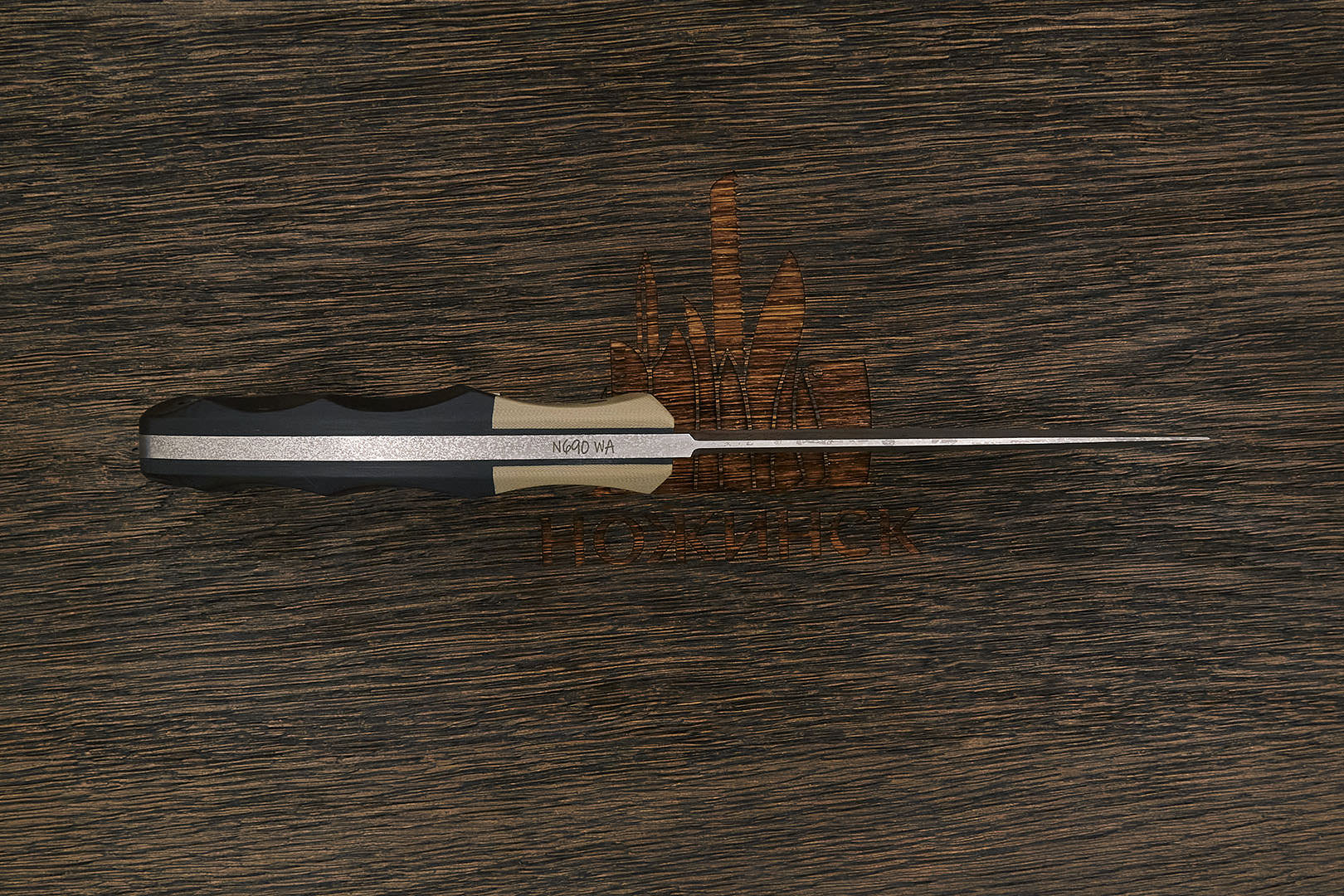 N690Co (N690) – коррозионностойкая немецкая инструментальная сталь производства Bohler-Uddeholm AG. Легирование кобальтом позволило улучшить сопротивляемость к высоким температурам и повысить общие механические качества.