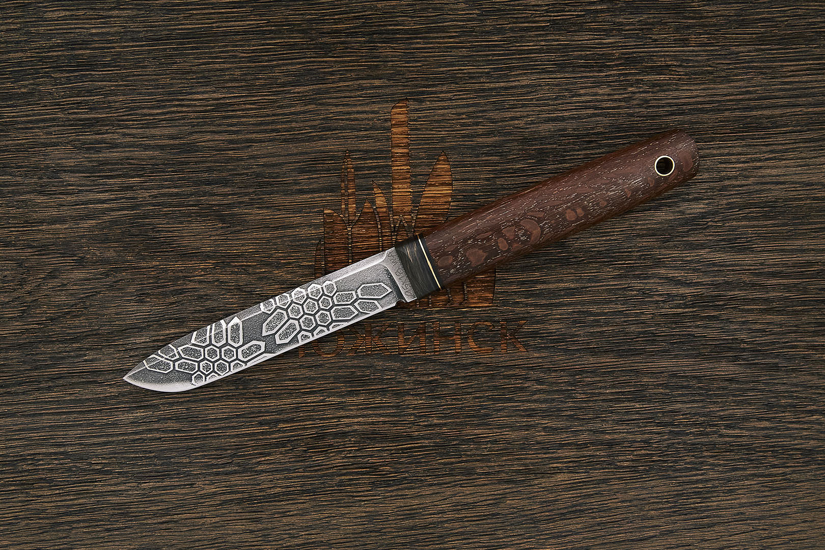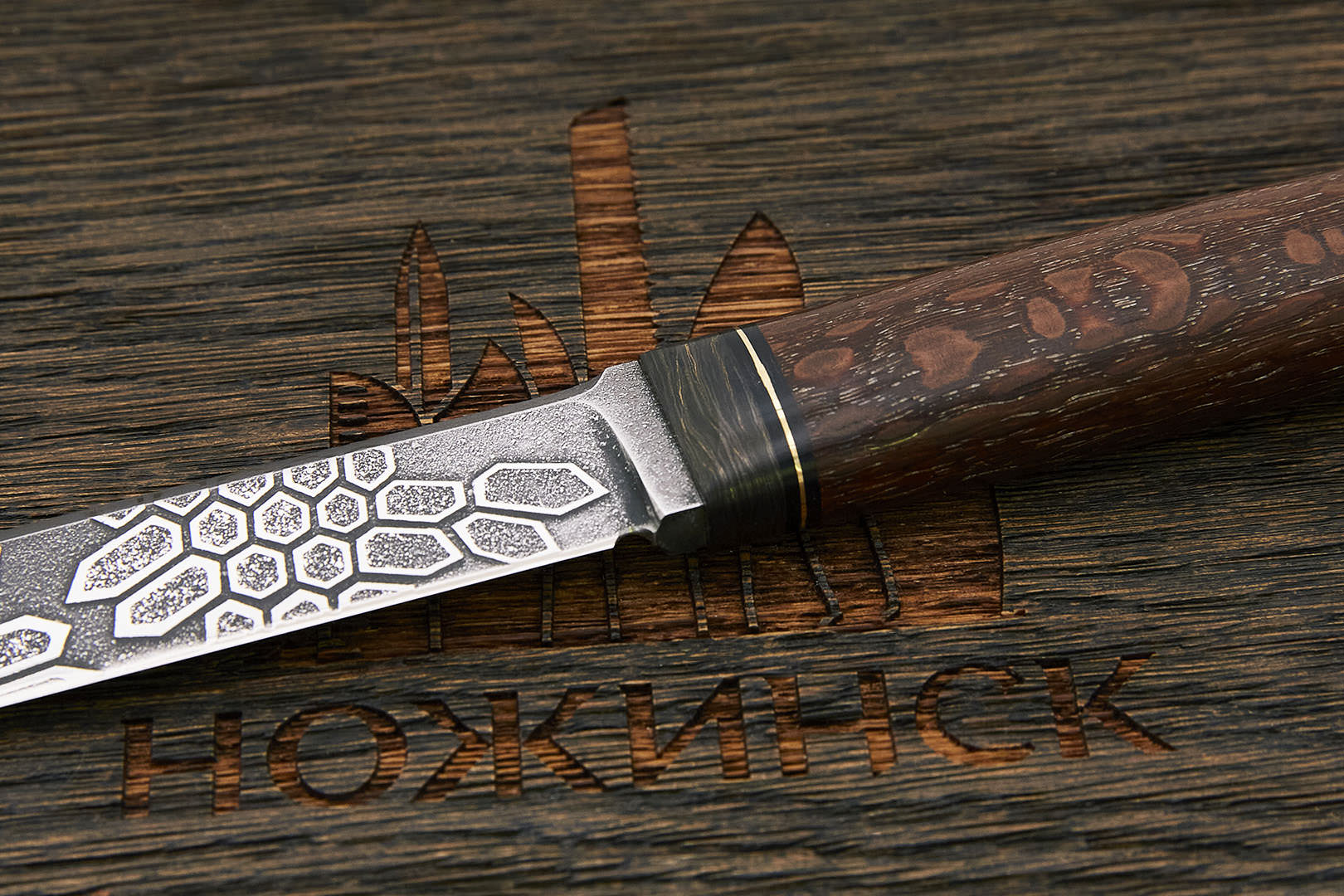 95Х18 – сложнолегированная мартенситная сталь отечественного производства, устойчивая к коррозии в атмосфере и умеренных агрессивных средах. Широко применяется в ножевом производстве, но достаточно сложна в обработке и требовательна к условиям ТО. При правильной термообработке сталь 95Х18 приобретает отличные режущие свойства и достигает твердости до 60-62 HRC. Обладает хорошей износостойкостью и прочностью. Сталь проста в обслуживании и не требует дополнительного ухода, хорошо полируется.