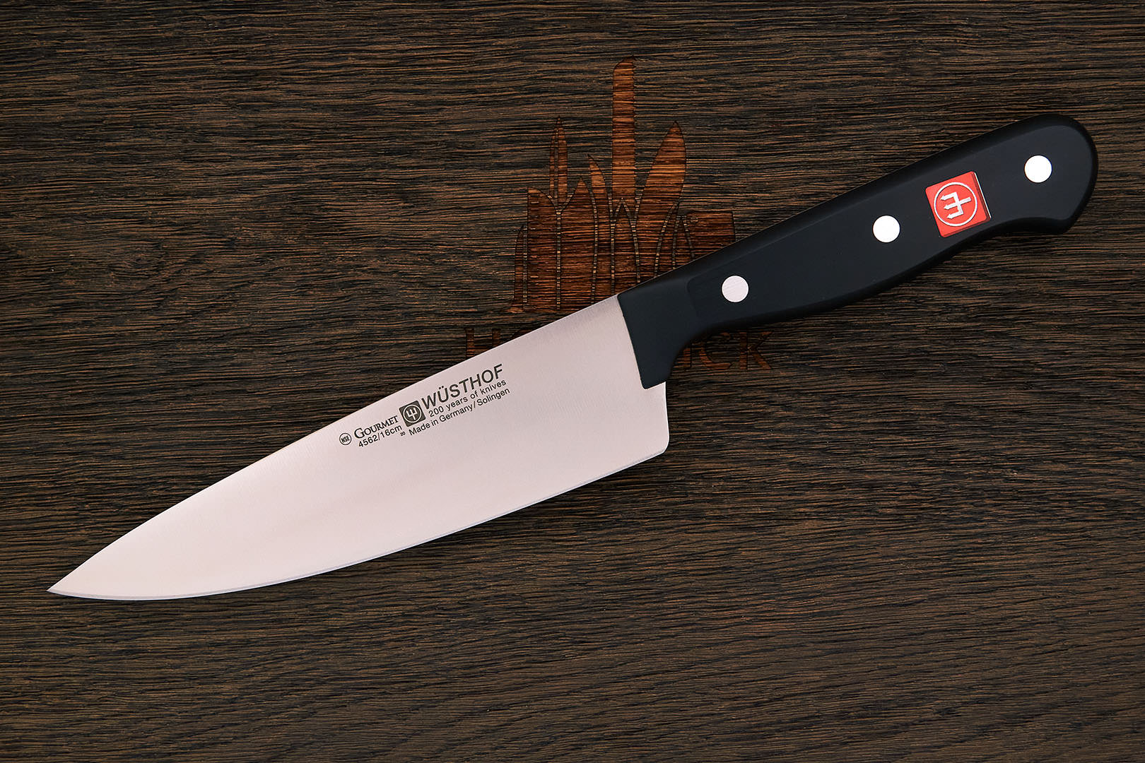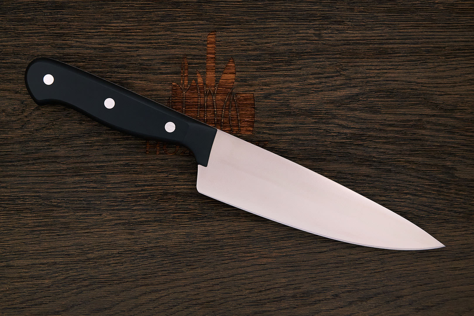 X50CrMoV15 – коррозионностойкая молибден-ванадиевая сталь производства немецкой компании Thyssen-Krupp. Имеет хорошую коррозионную устойчивость, неплохое удержание заточки. Твердость стали в серийных изделиях, как правило, невысокая 54-56 HRC, что позволяет легко править такие ножи металлическим мусатом по европейской кухонной традиции.