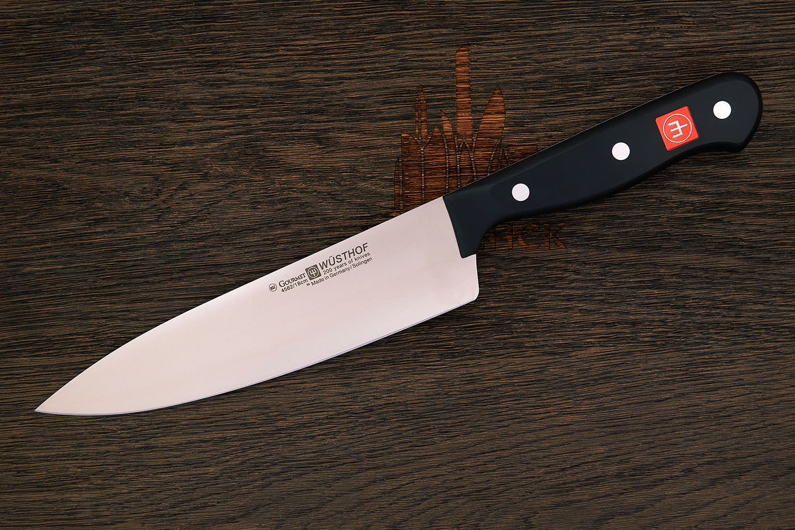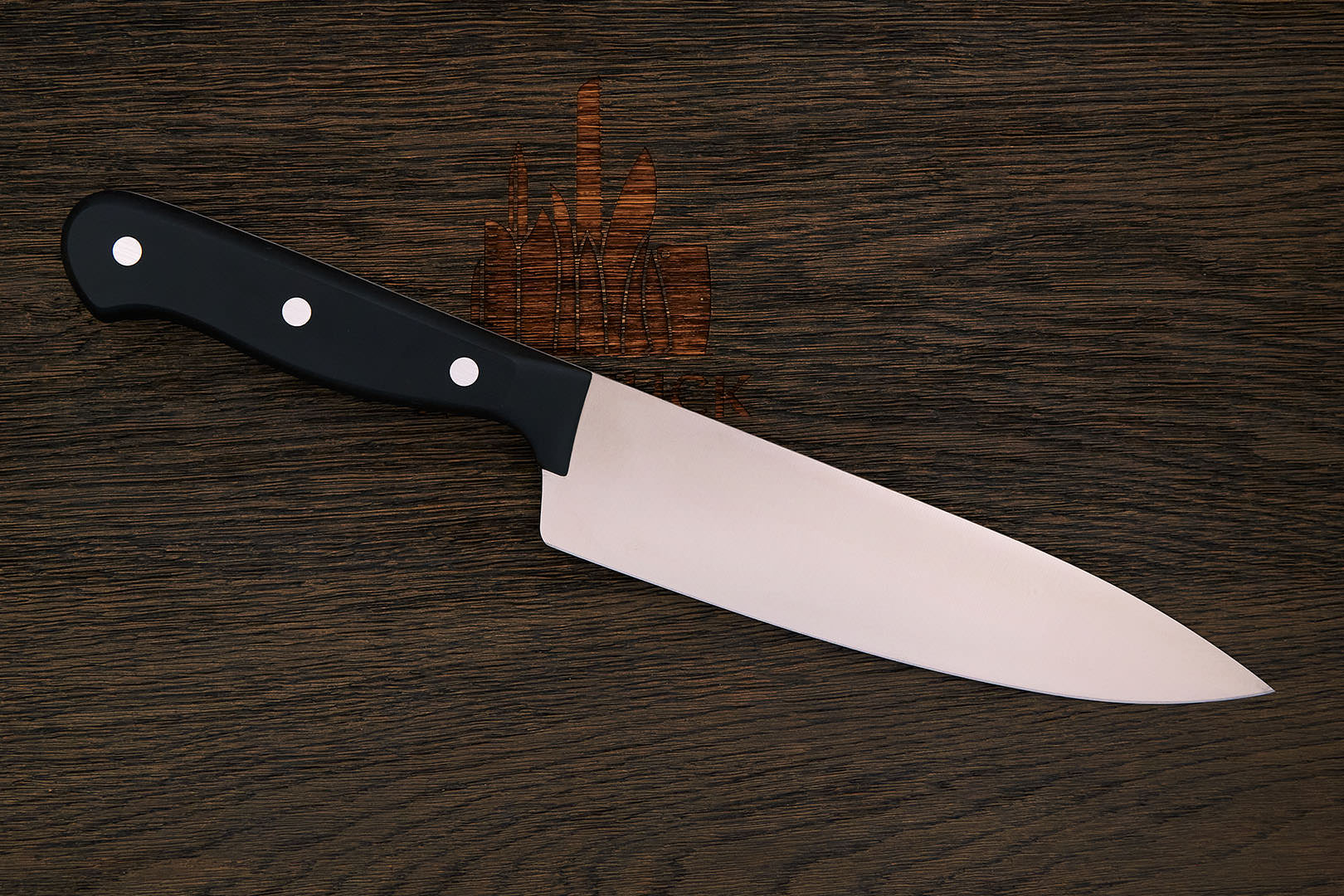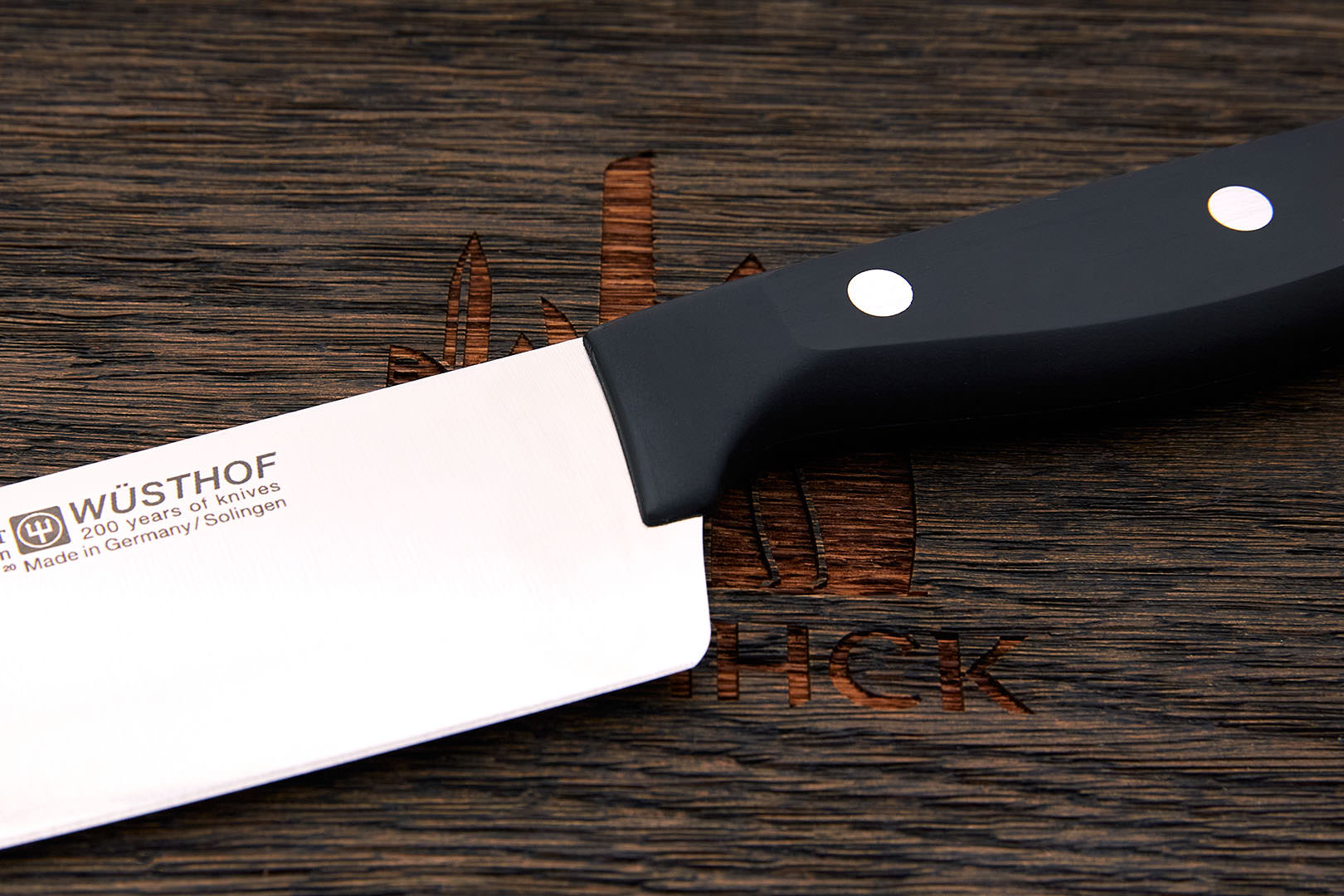 X50CrMoV15 – коррозионностойкая молибден-ванадиевая сталь производства немецкой компании Thyssen-Krupp. Имеет хорошую коррозионную устойчивость, неплохое удержание заточки. Твердость стали в серийных изделиях, как правило, невысокая 54-56 HRC, что позволяет легко править такие ножи металлическим мусатом по европейской кухонной традиции.