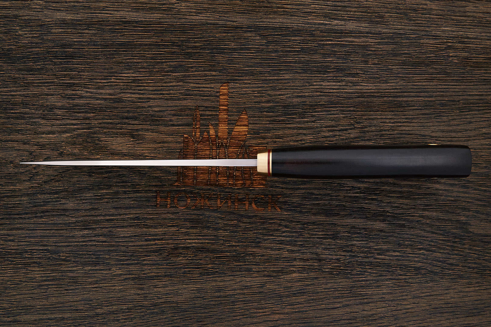 D2 – высоколегированная инструментальная недорогая сталь. Очень широко используется для изготовления ножей по всему миру. Сочетает в себе высокую прочность, упругость, износостойкость. Обладает агрессивным резом, требует ухода ввиду невысокой коррозионной стойкости…