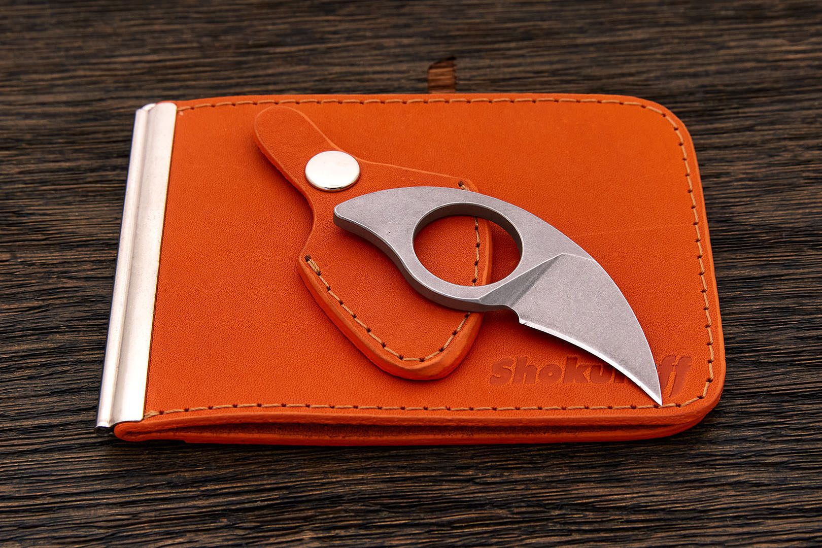 Кошелек с зажимом для денег и ножом оранжевый | Арт ShM2or