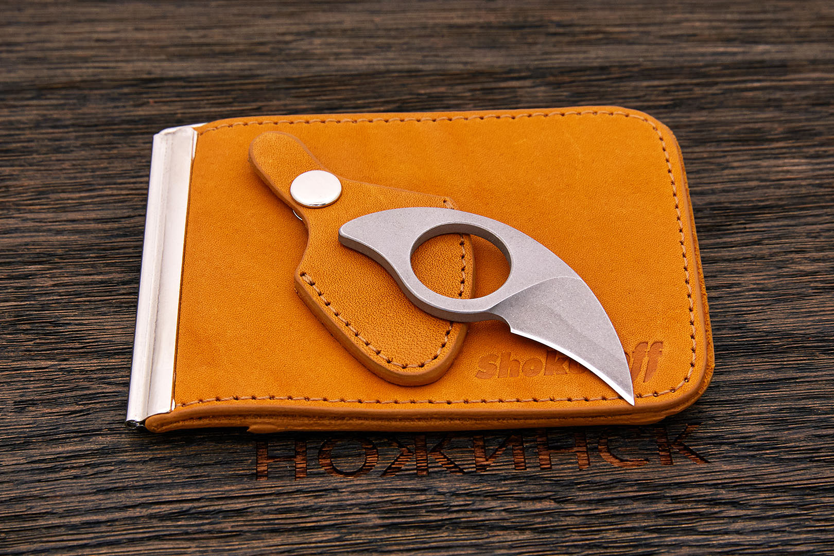 Кошелек с зажимом для денег и ножом, с отделом для монет | Арт ShM3bg