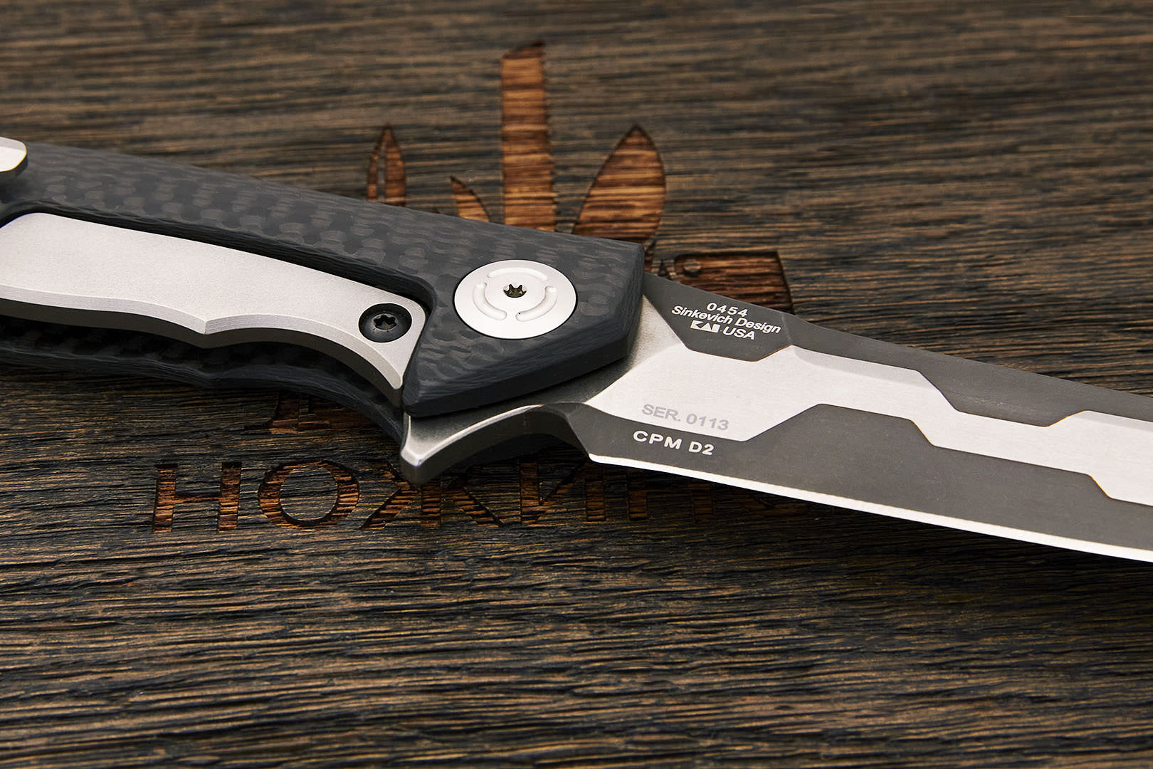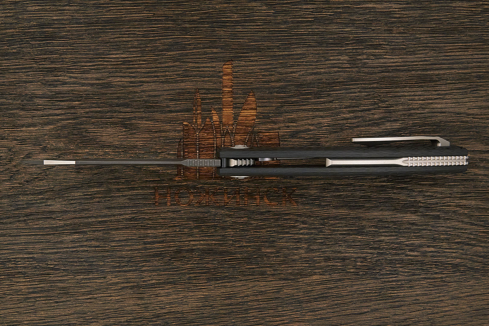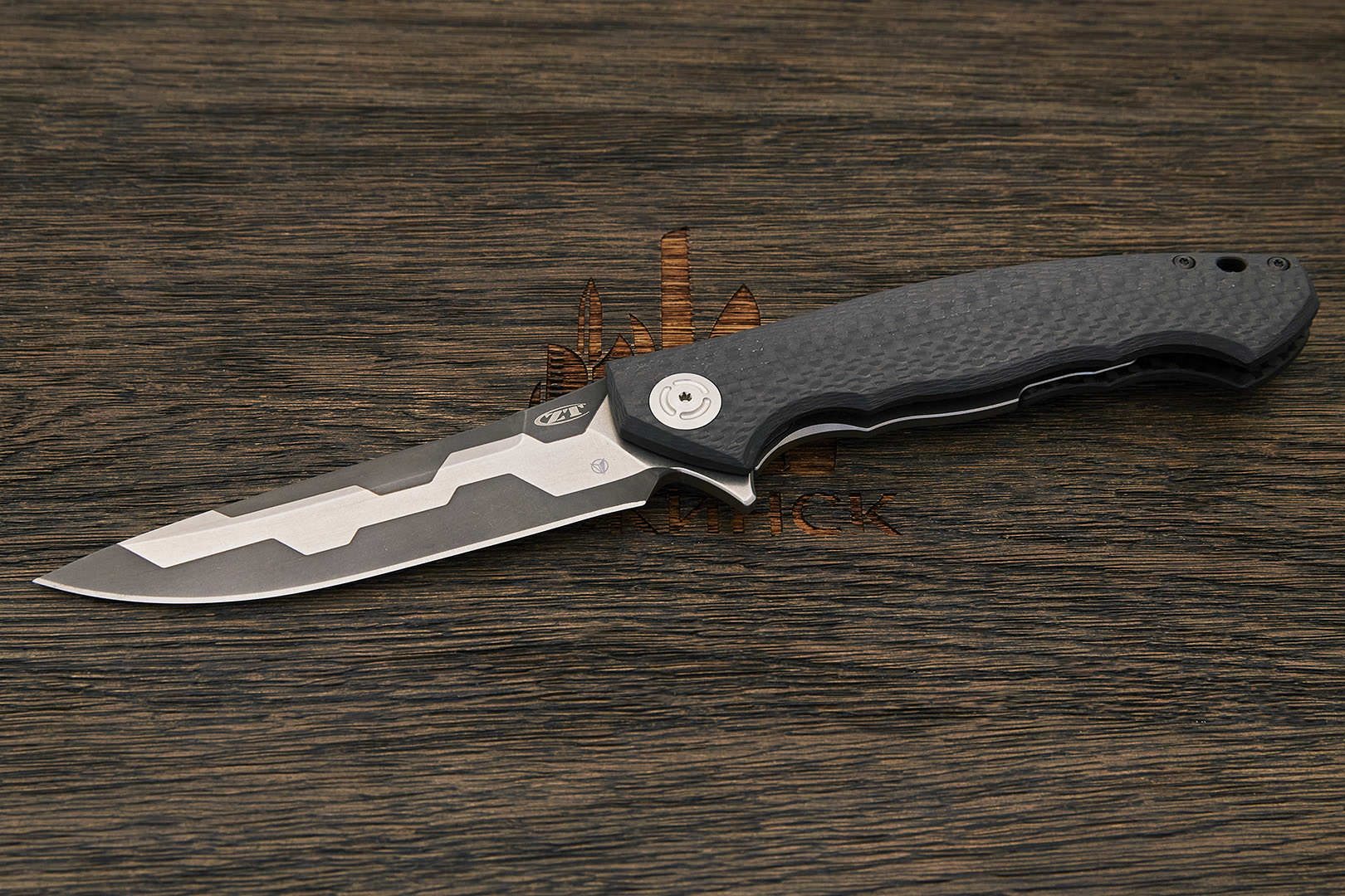 На сегодняшний день карбон один из лучших материалов для изготовления рукоятей ножей. Строгий по фактуре, нейтральный по цвету от светло-серого до почти черного, он практически не скользит в руке. Чрезвычайно прочный, абсолютно не впитывает ни воду, ни запахи, отлично переносит перепады влажности и температуры. Пожалуй, единственный его недостаток — сложная технология производства и, как следствие, высокая цена.
