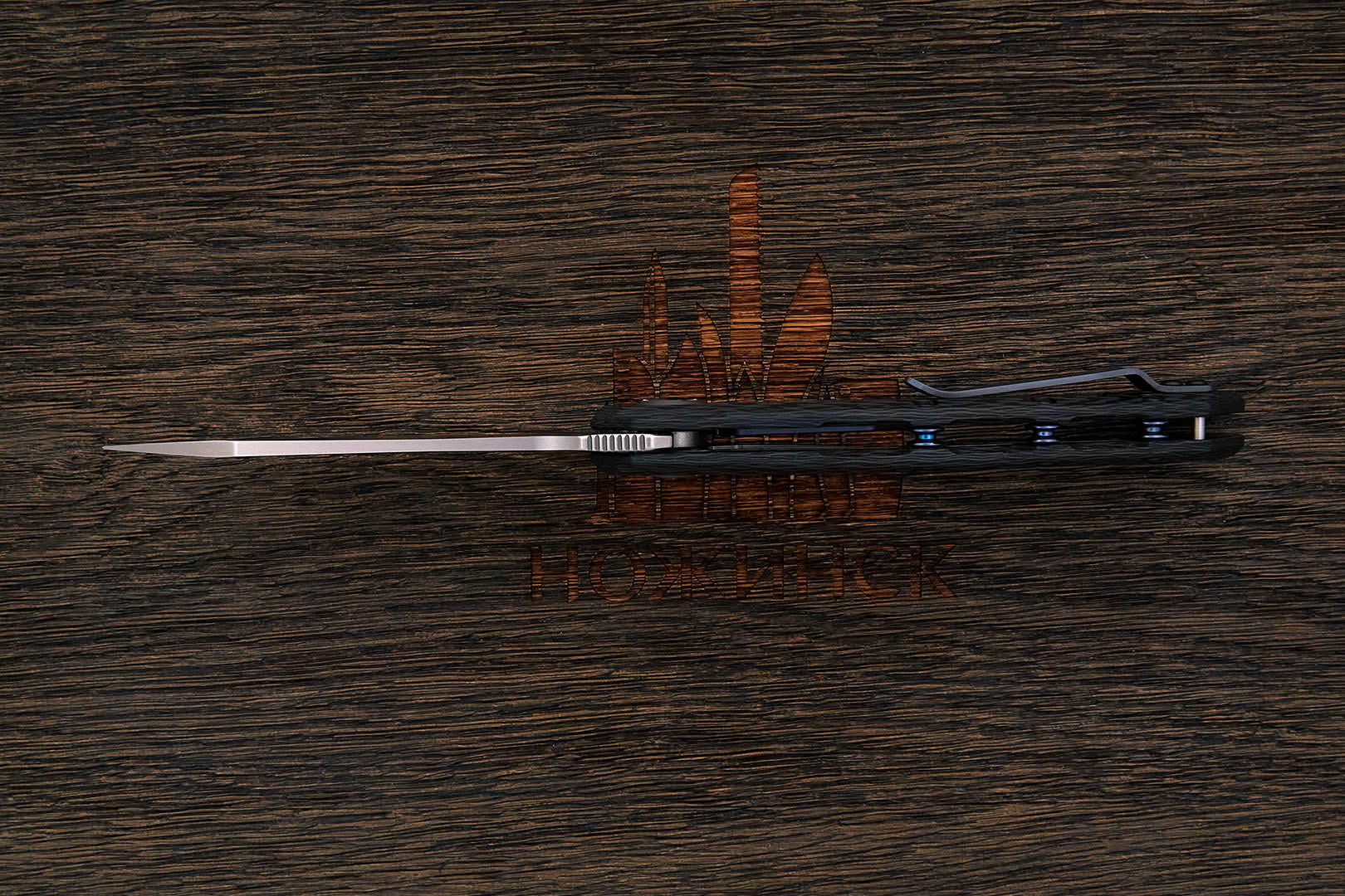 На сегодняшний день карбон один из лучших материалов для изготовления рукоятей ножей. Строгий по фактуре, нейтральный по цвету от светло-серого до почти черного, он практически не скользит в руке. Чрезвычайно прочный, абсолютно не впитывает ни воду, ни запахи, отлично переносит перепады влажности и температуры. Пожалуй, единственный его недостаток — сложная технология производства и, как следствие, высокая цена.